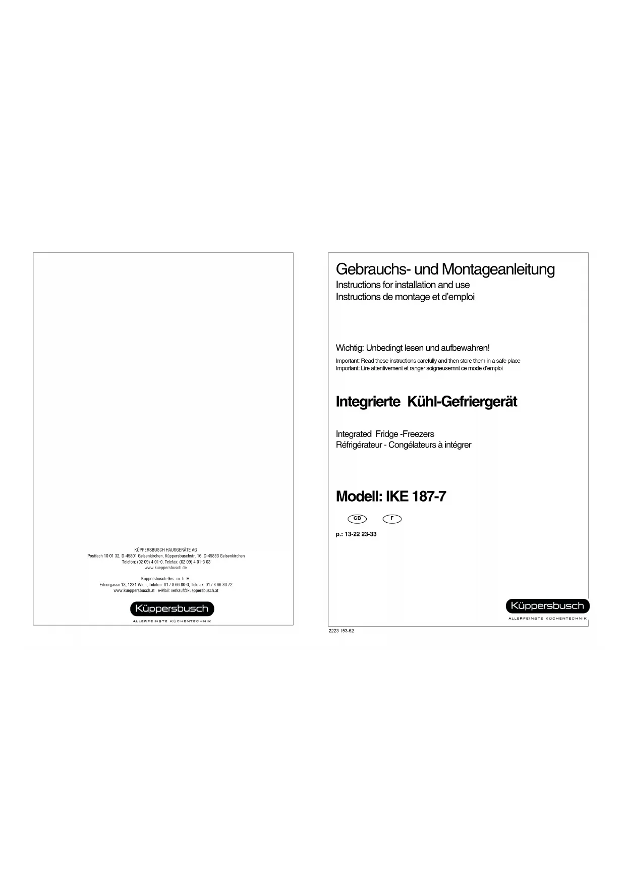 Retrouvez gratuitement la notice de l'appareil IKE 1877 Küppersbusch au format PDF.