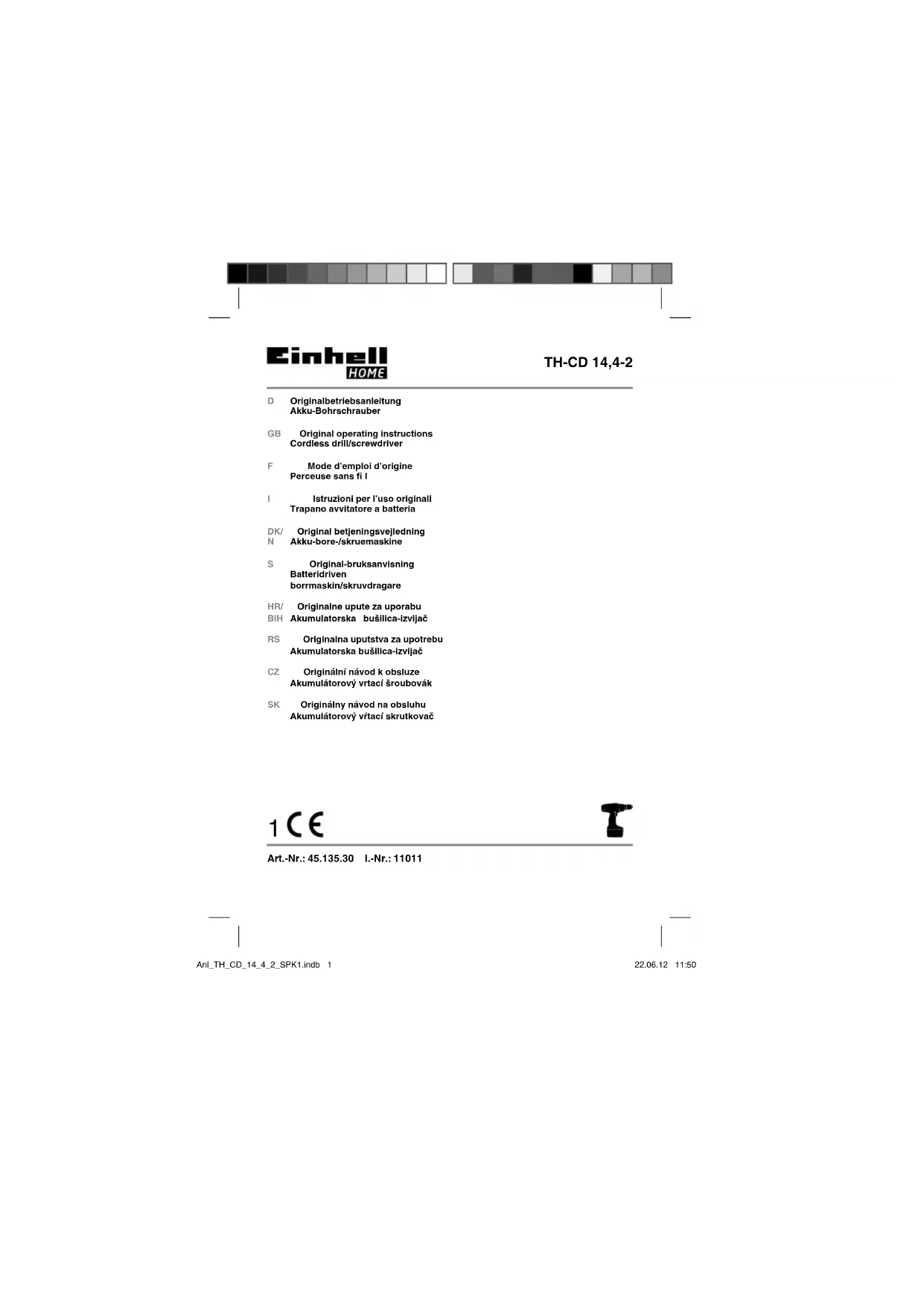 Téléchargez la notice de votre Visseuse au format PDF gratuitement ! Retrouvez votre notice THCD 14 42 - EINHELL et reprennez votre appareil électronique en main. Sur cette page sont publiés tous les documents nécessaires à l'utilisation de votre appareil THCD 14 42 de la marque EINHELL.