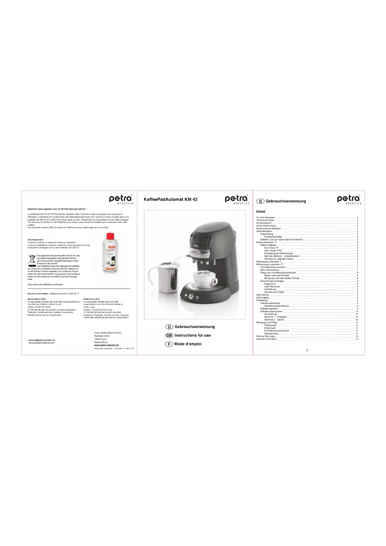 KM 42.17 - Machine à café Petra Electric - Notice d'utilisation et mode d'emploi gratuit