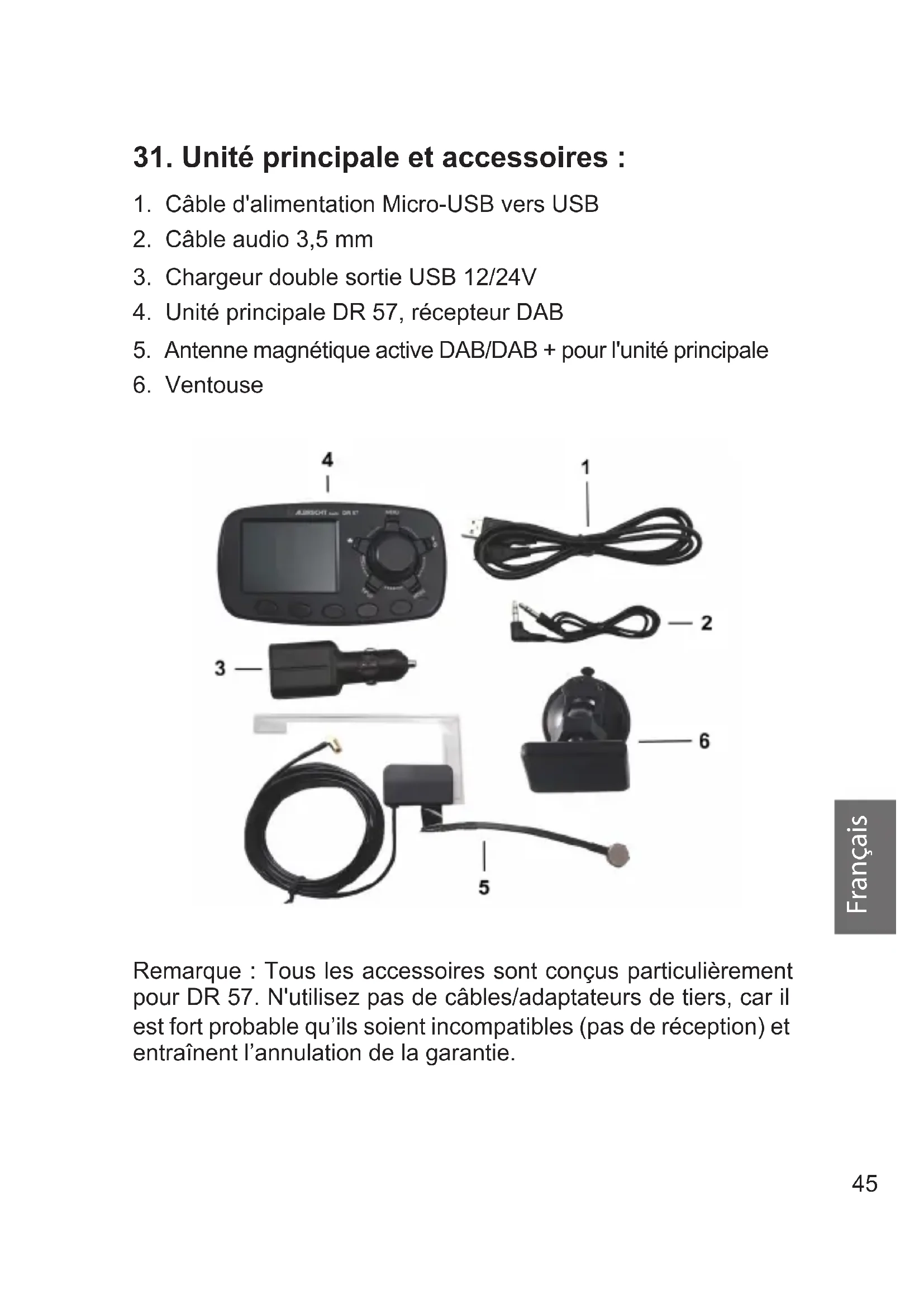 31. Unité principale et accessoires :