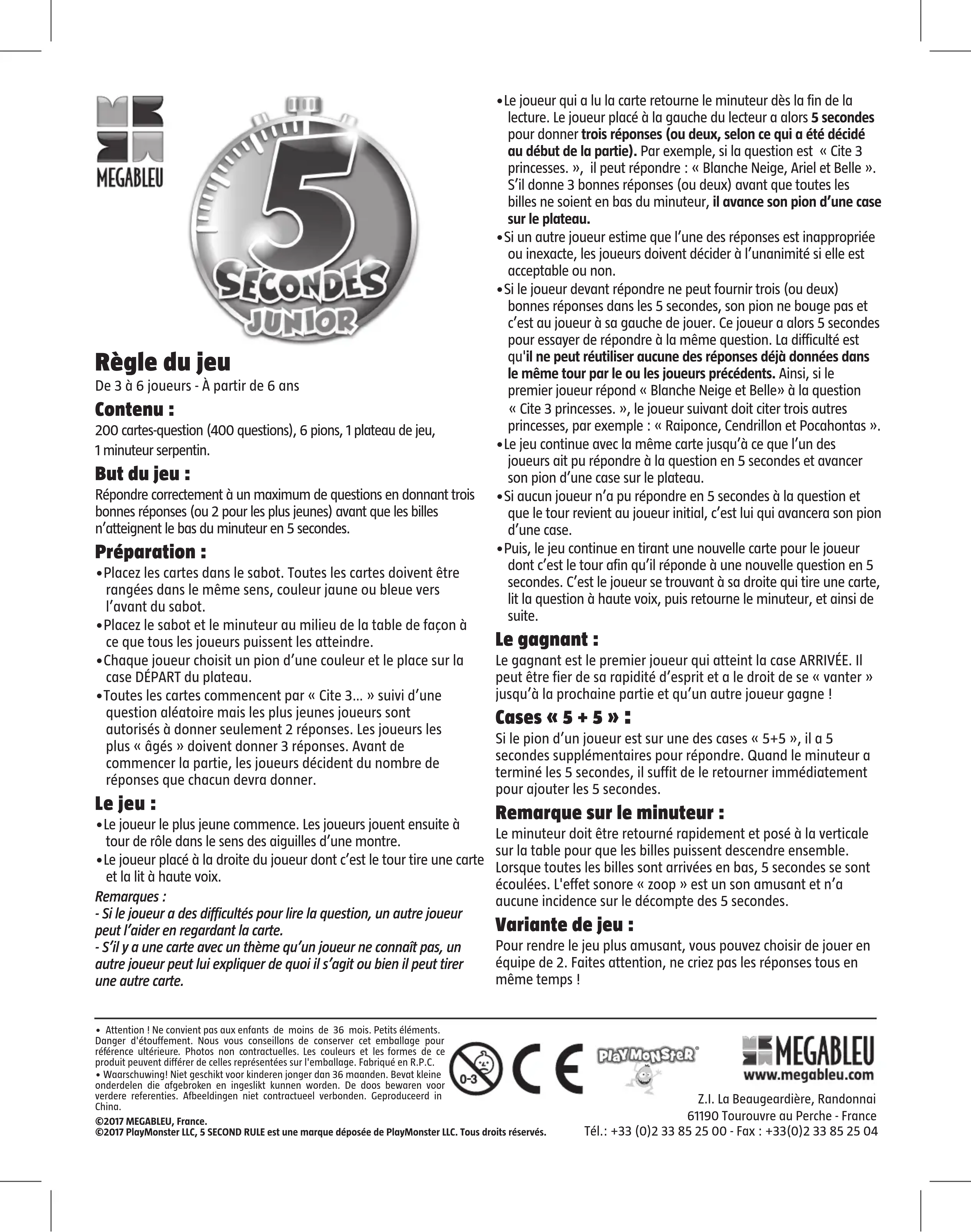 5 Secondes Junior - Jeu de société MEGABLEU - Notice d'utilisation et mode d'emploi gratuit