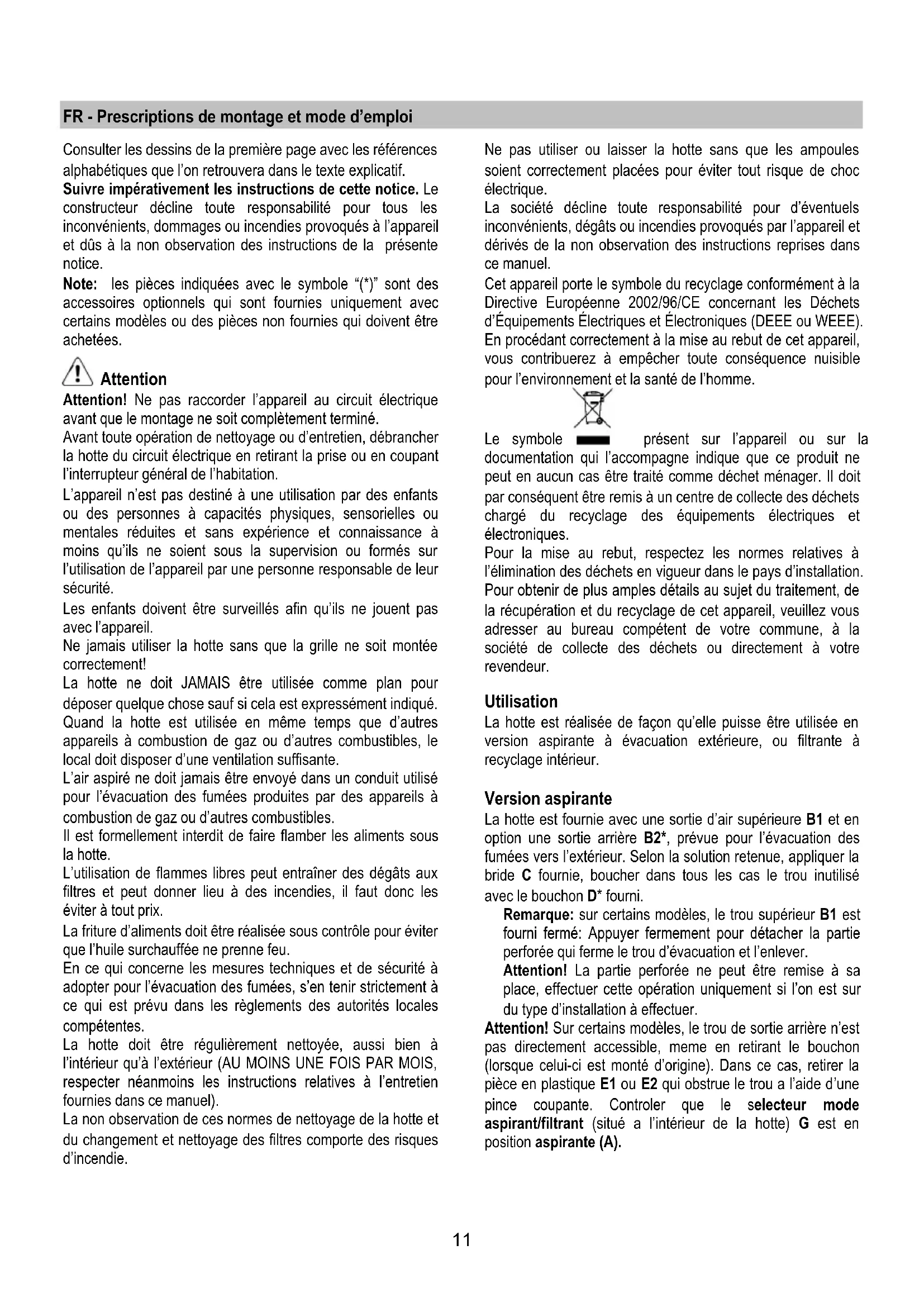 | Maintenance et réparation | Filtres à graisse lavables au lave-vaisselle, Filtres à charbon remplaçables, Entretien régulier recommandé pour un fonctionnement optimal |