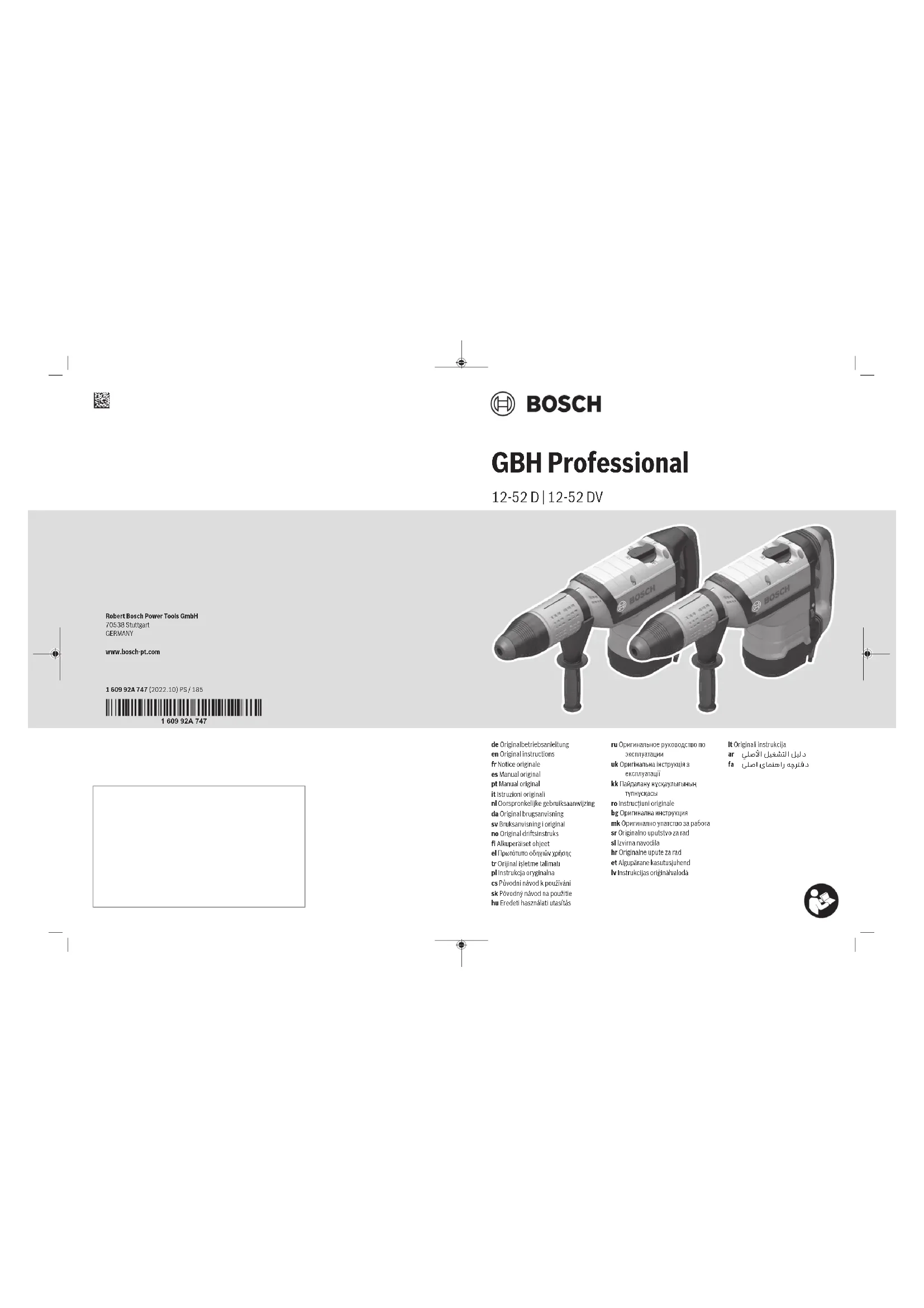 Retrouvez gratuitement la notice de l'appareil GBH 1252 DV Professional BOSCH au format PDF.