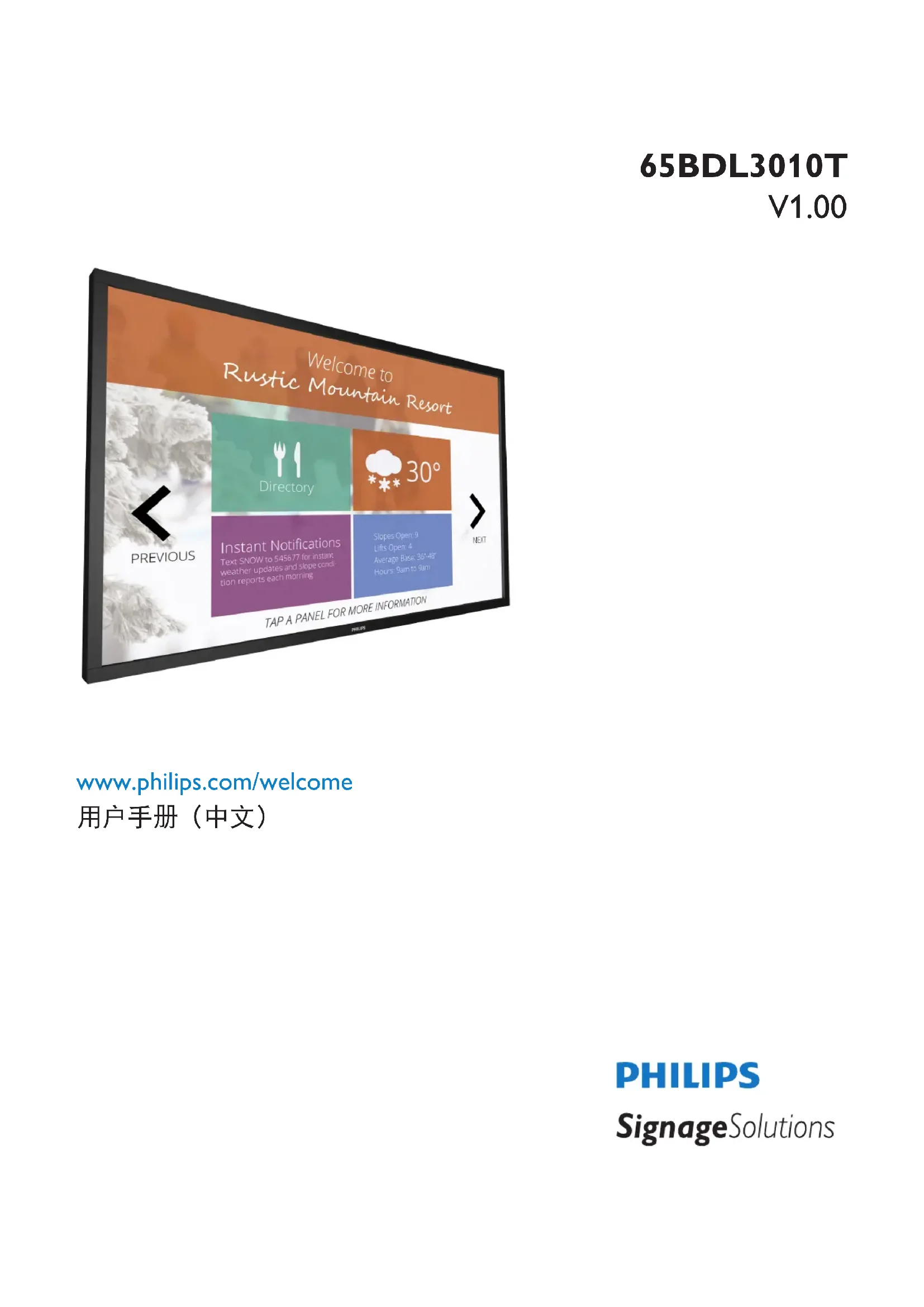 Signage Solutions 65BDL3010T - Moniteur PHILIPS - Notice d'utilisation et mode d'emploi gratuit