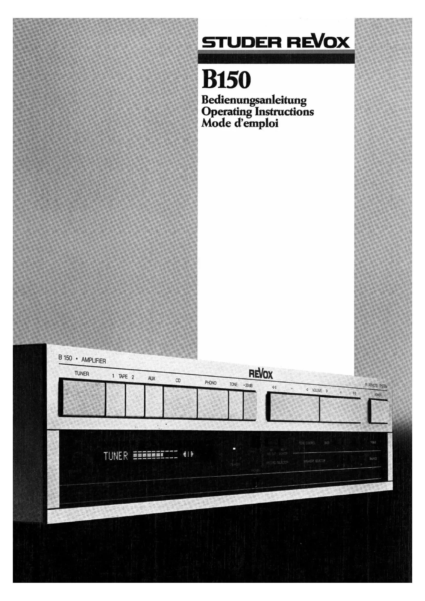 Retrouvez gratuitement la notice de l'appareil B150 REVOX au format PDF.