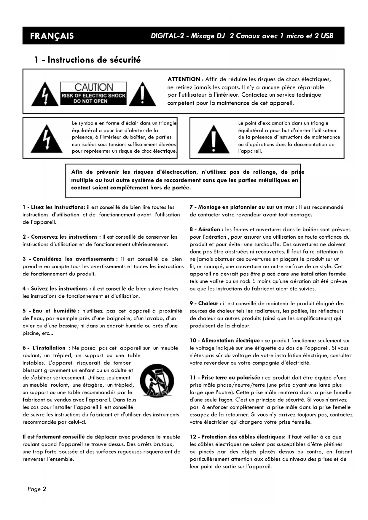 2 - Conserve les instructions : il est conseilé de conserver les instructions d'utilisation et de fonctionnement ultérieurement.