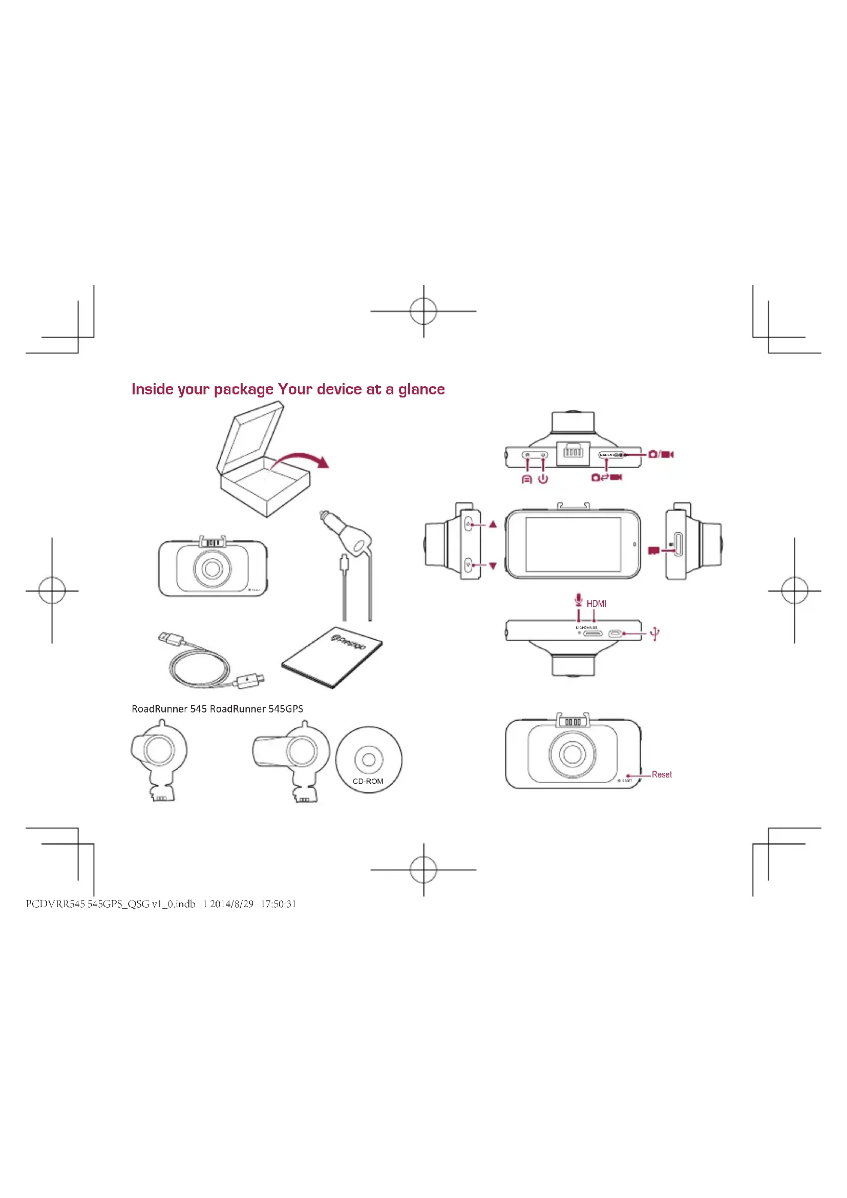 - Configuration GMT : Pour sélectionner l'heure GMT locale. (Greenwich Mean Time). PCDVRR545 545GPS_QSG v1_0.indb 1 2014/8/29 17:50:32FR Guide de démarrage rapide Prestigio RoadRunner Consignes de sécurité Merci de lire toutes les consignes de sécurité avant d'utiliser l'appareil.