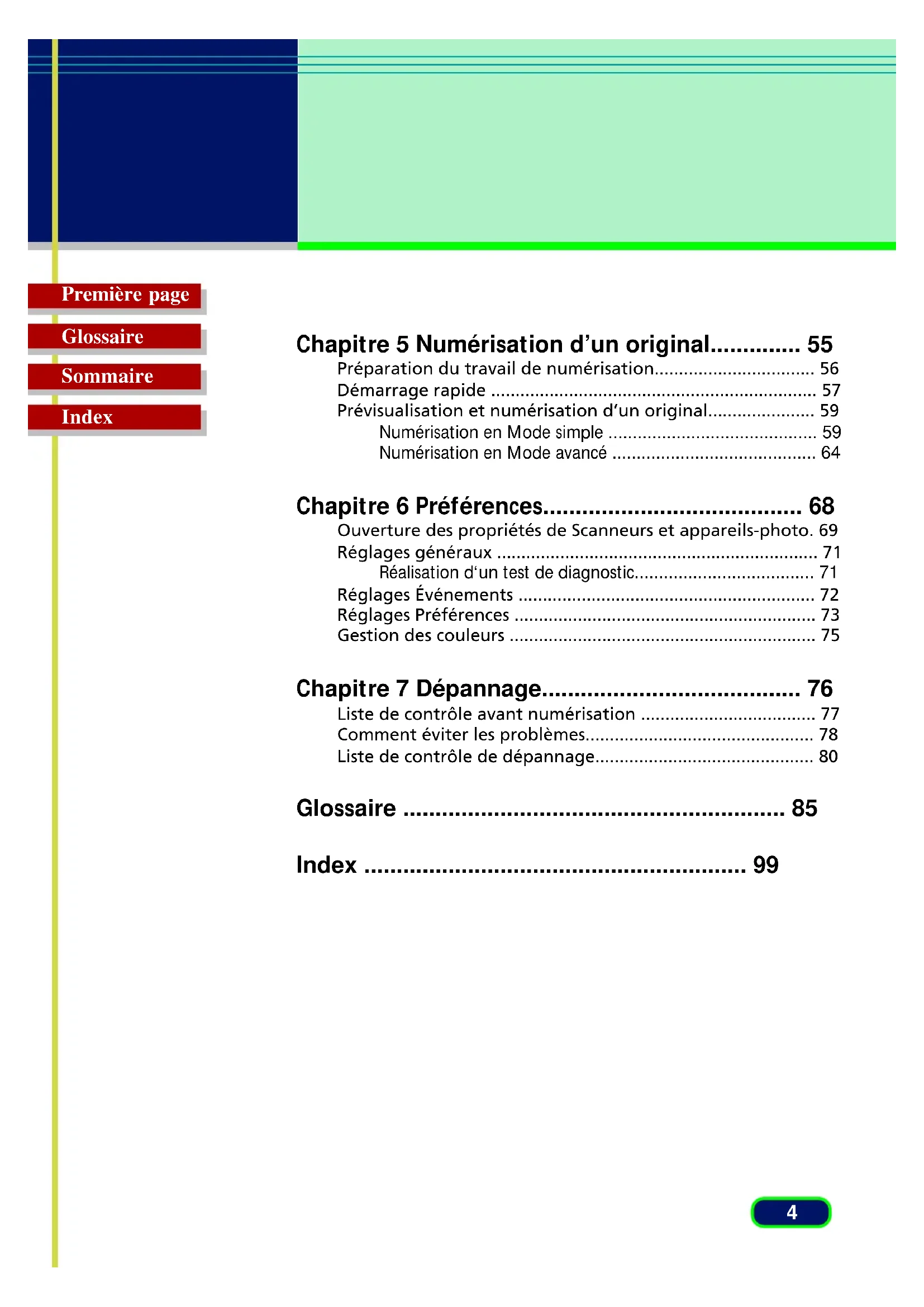 Chapitre 5 Numérisation d’un original.............. 55
