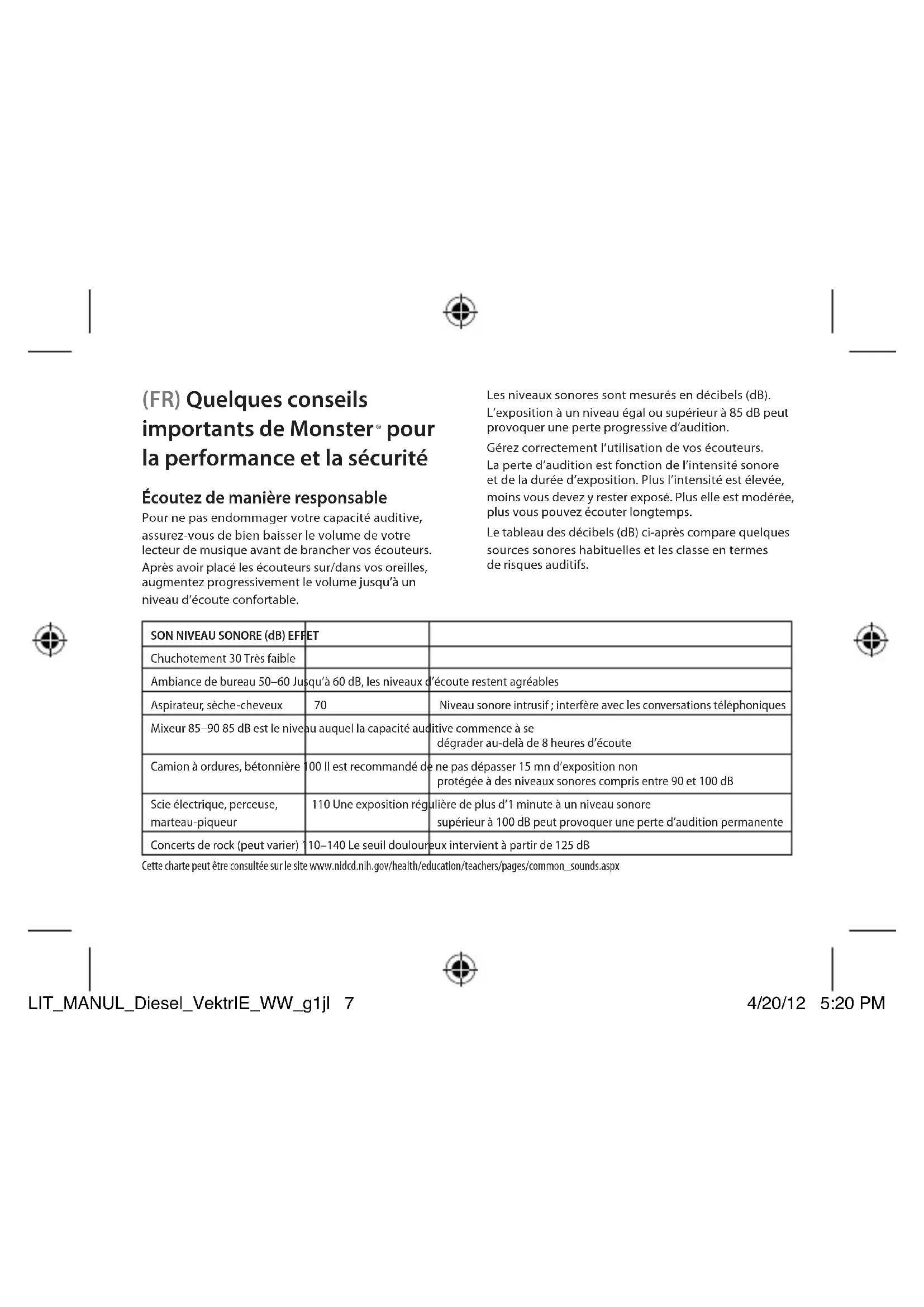 Monster >, le logo Monster, le produit et l'emballage sont des marques commerciales ou des marques déposées de Monster Cable Products, Inc. ou de ses liées aux États-Unis ou dans d'autres pays. iPad, iPhone, et iPod sont des marques commerciales de Apple Inc., déposées aux États-Unis et dans d'autres pays.