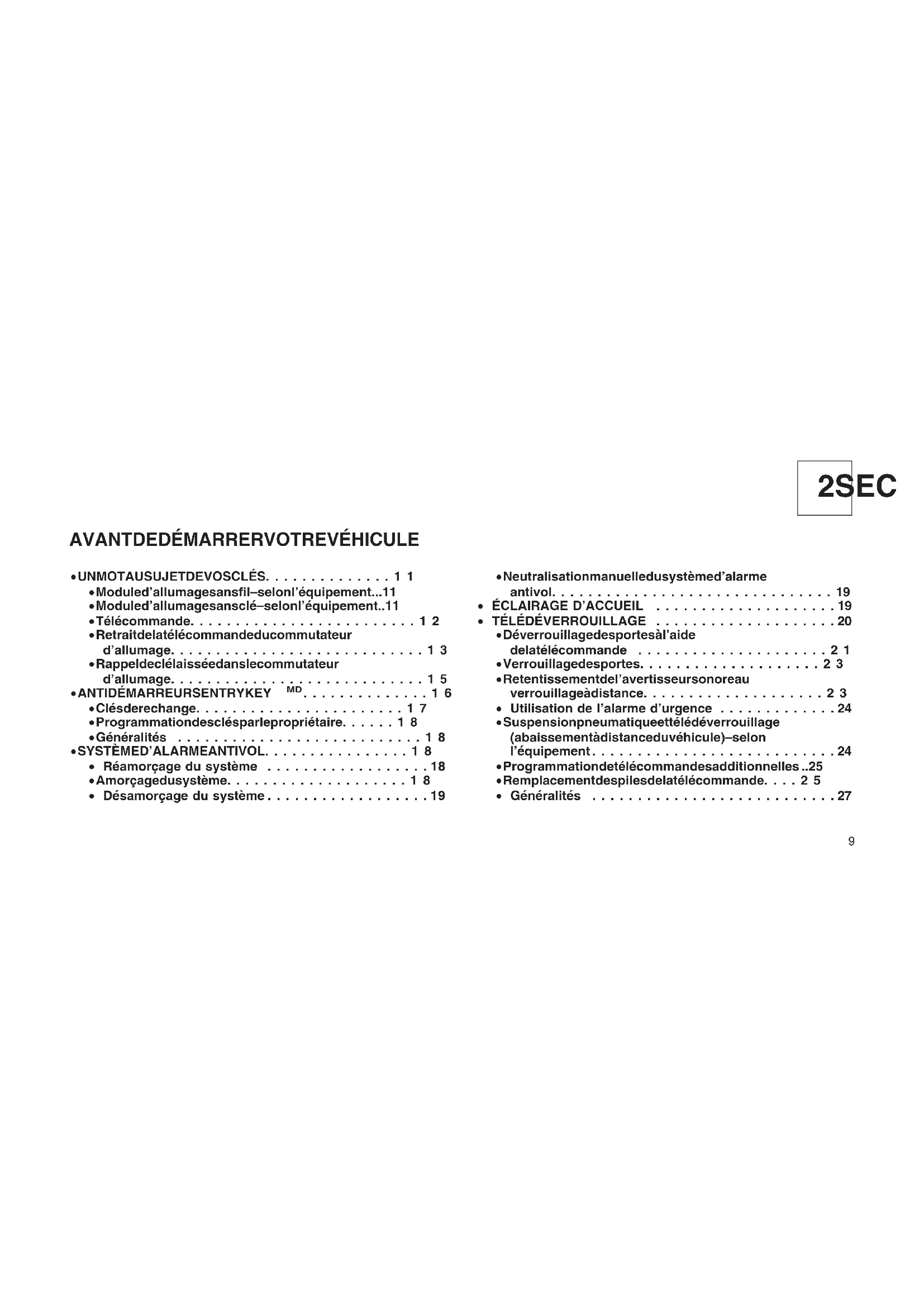 - Généralités ...........................27 9• SYSTÈME DE DÉMARRAGE À DISTANCE – SELON L’ÉQUIPEMENT ..........................28