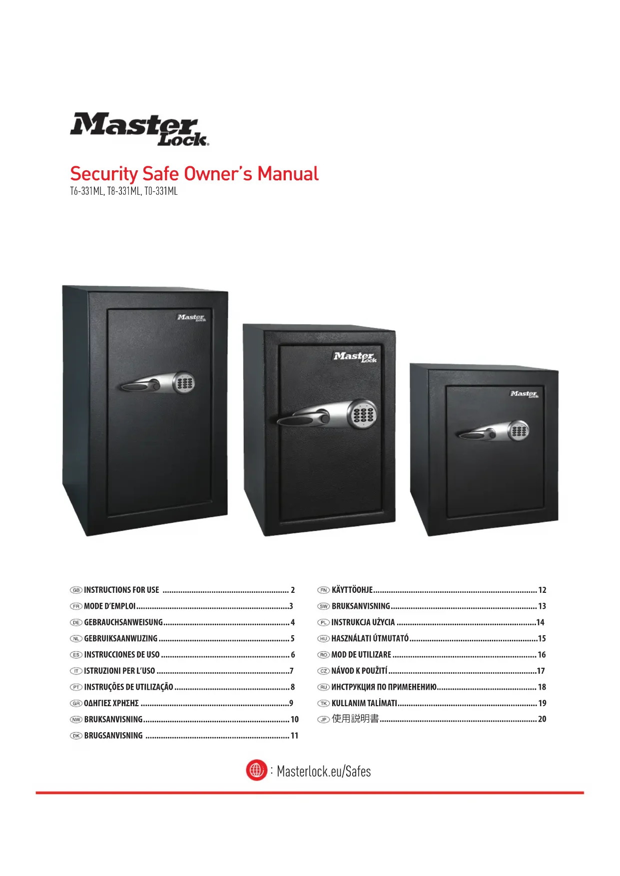 T6331ML - Coffre-fort Master Lock - Notice d'utilisation et mode d'emploi gratuit