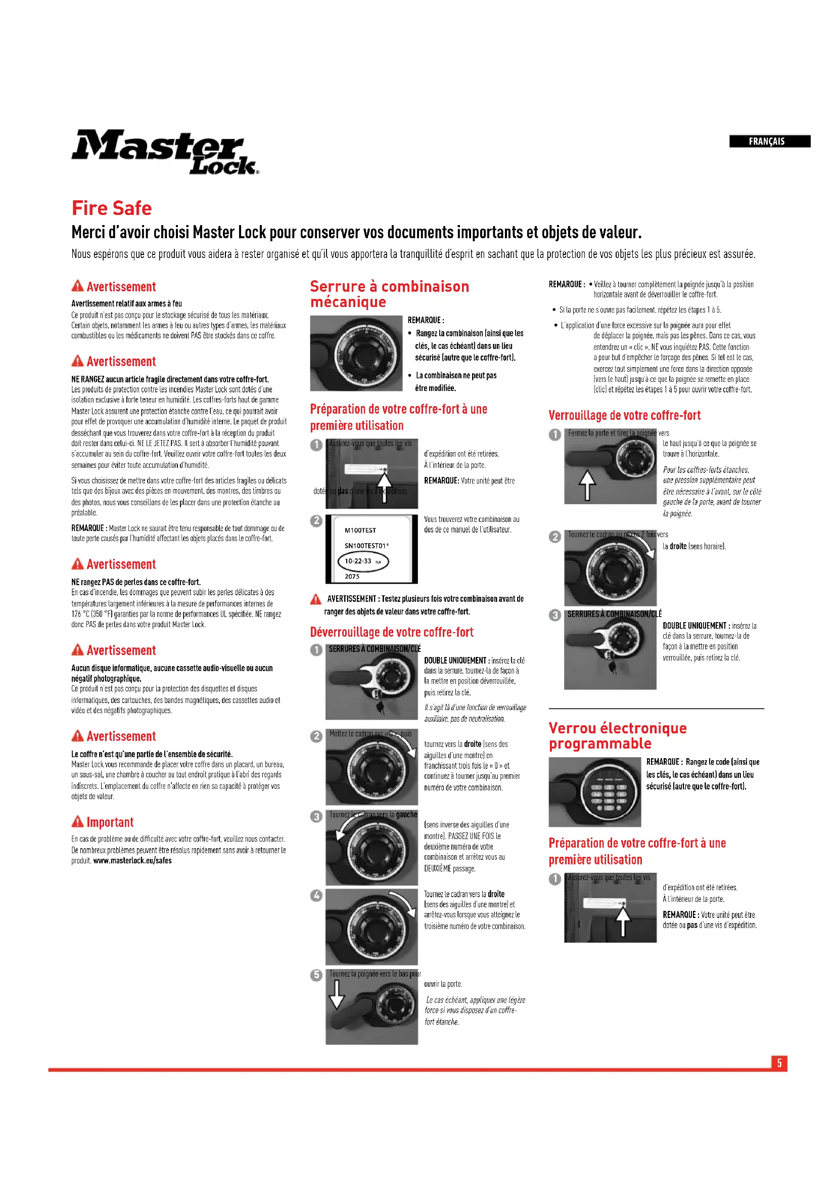 Merci d'avoir choisi Master Lock pour conserver vos documents importants et objets de valeur.