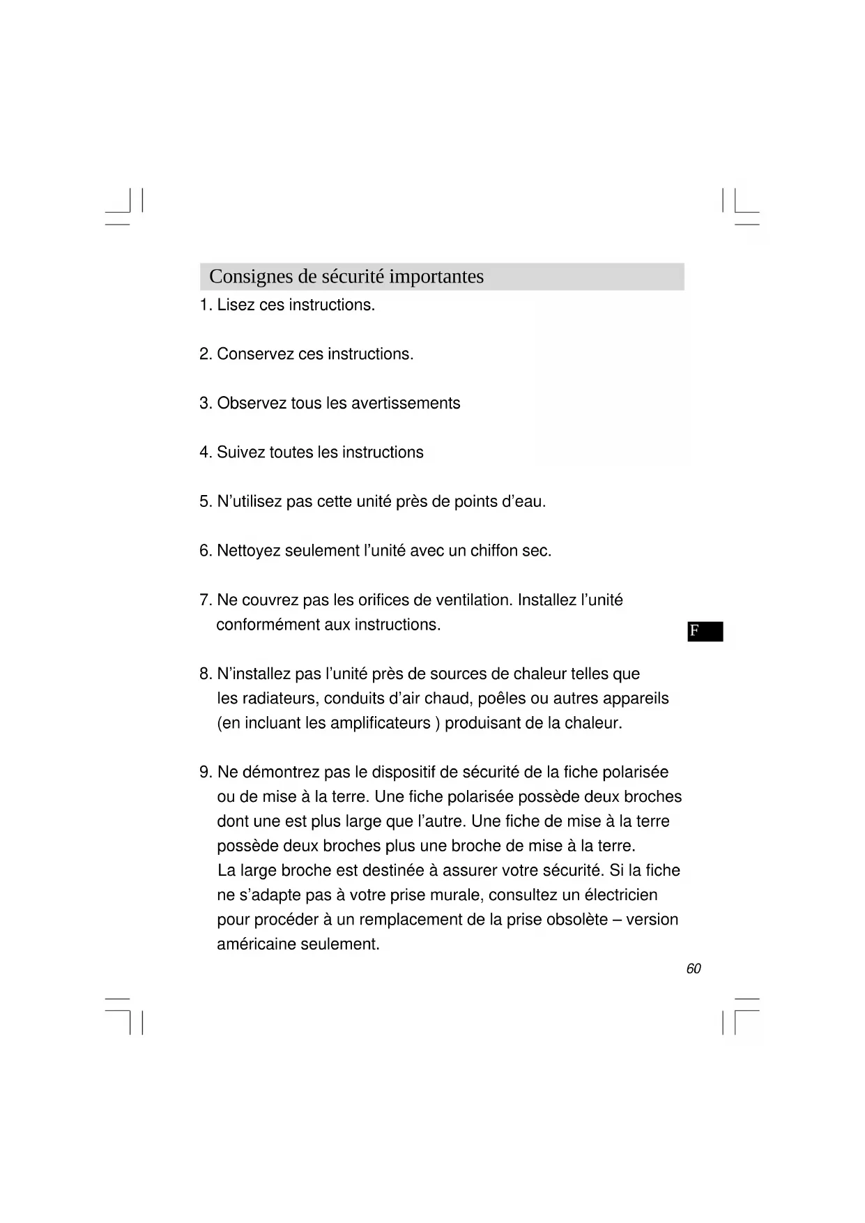 9. Ne démontrez pas le dispositif de sécurité de la fiche polarisée