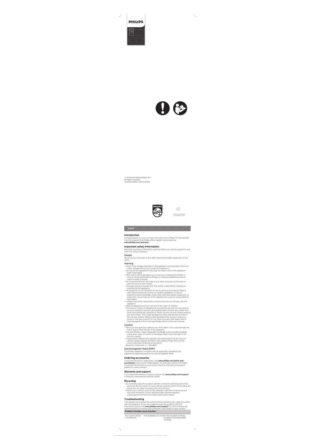 Retrouvez gratuitement la notice de l'appareil PowerGo FC8293 PHILIPS au format PDF.