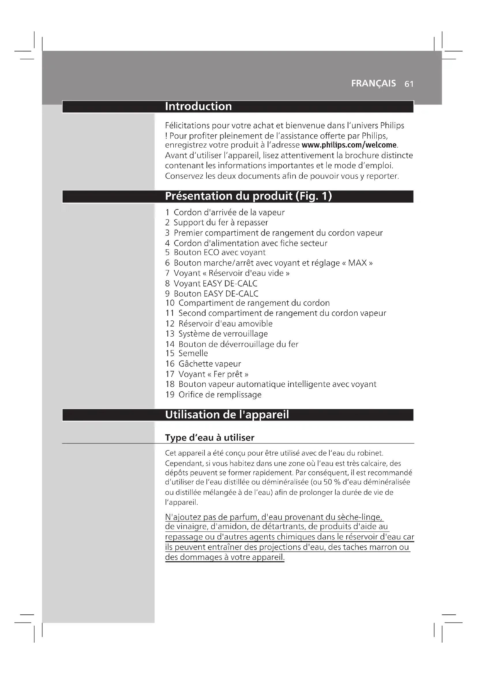 MODE D'EMPLOI PerfectCare Elite Plus GC9671 PHILIPS