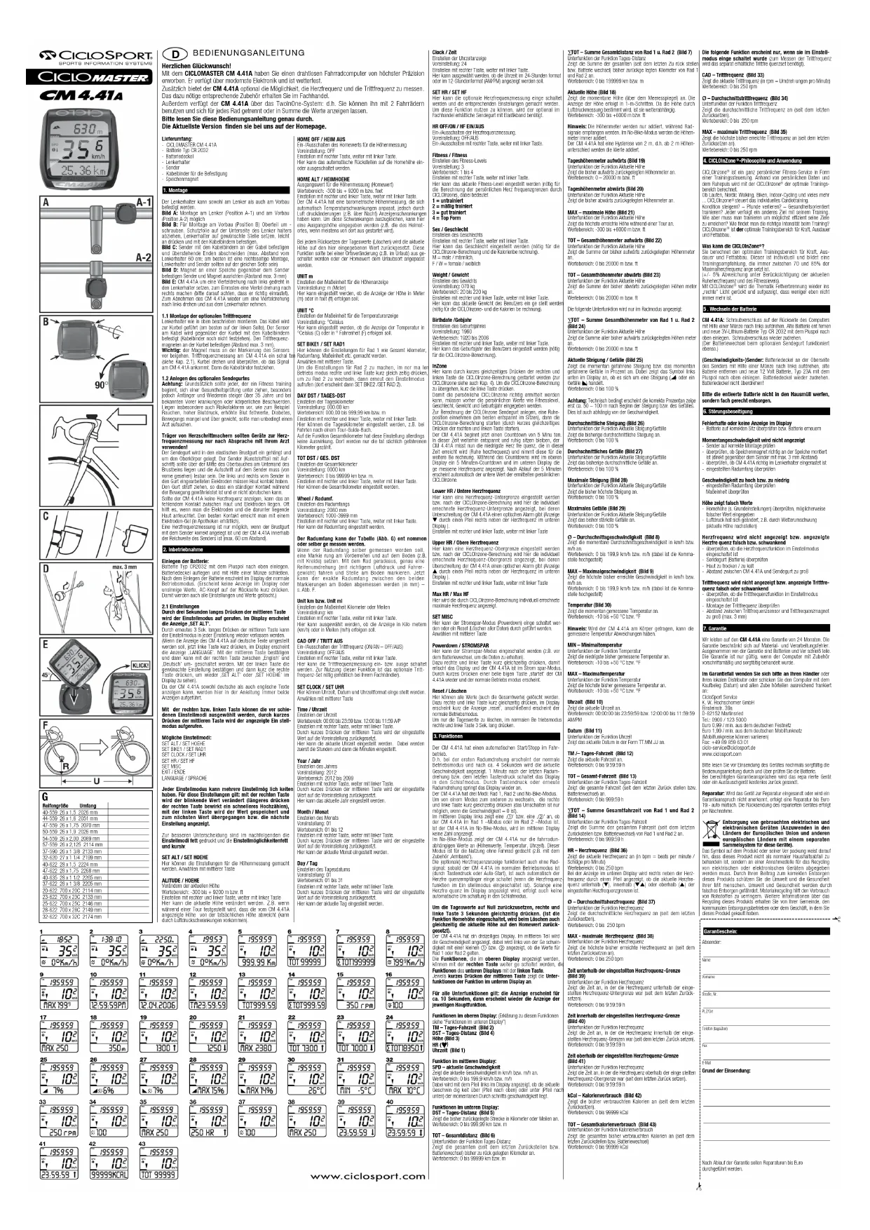 Ciclomaster CM 4.41A - Compteur Ciclo - Notice d'utilisation et mode d'emploi gratuit