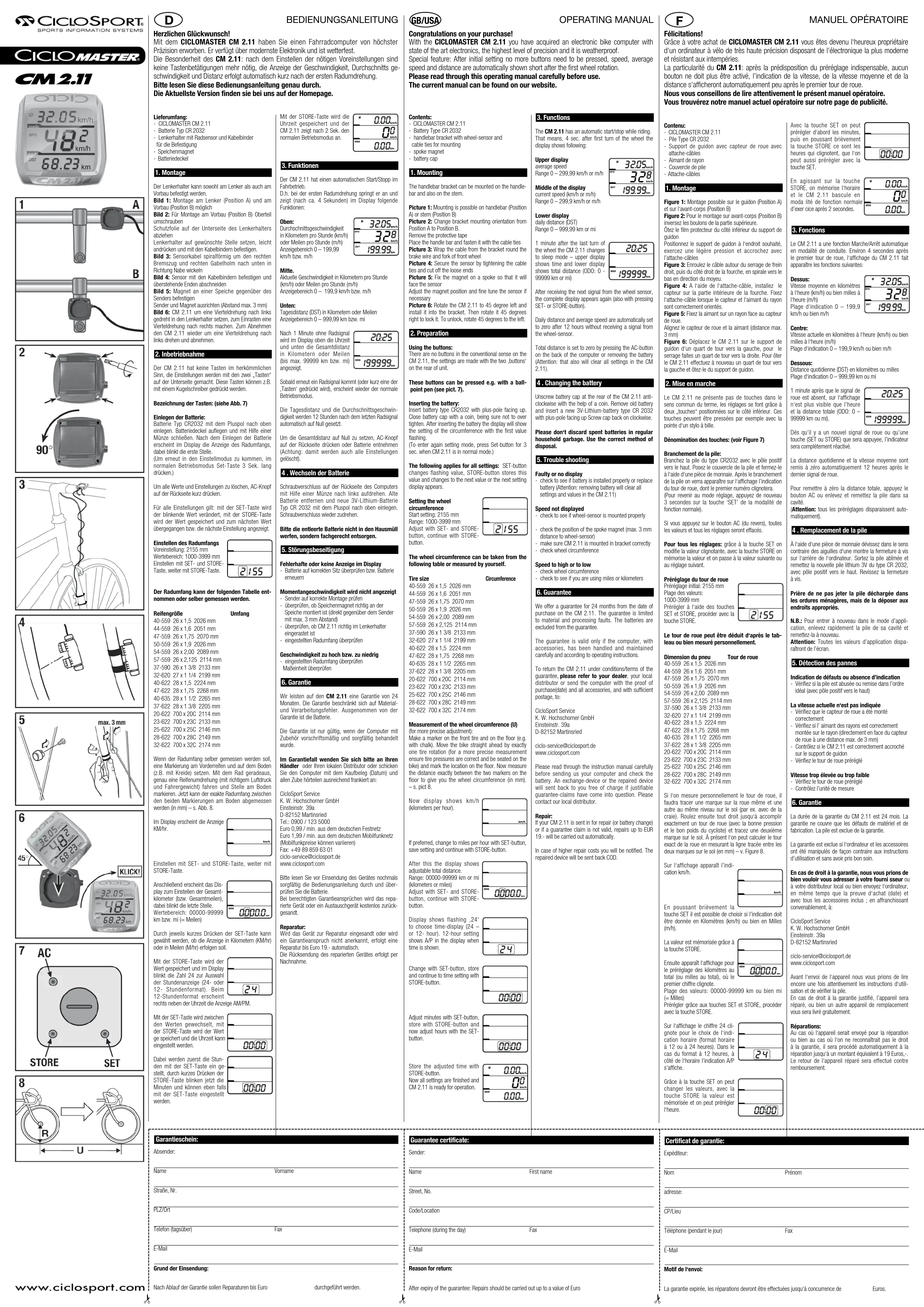 Retrouvez gratuitement la notice de l'appareil Ciclomaster CM 2.11 Ciclo au format PDF.