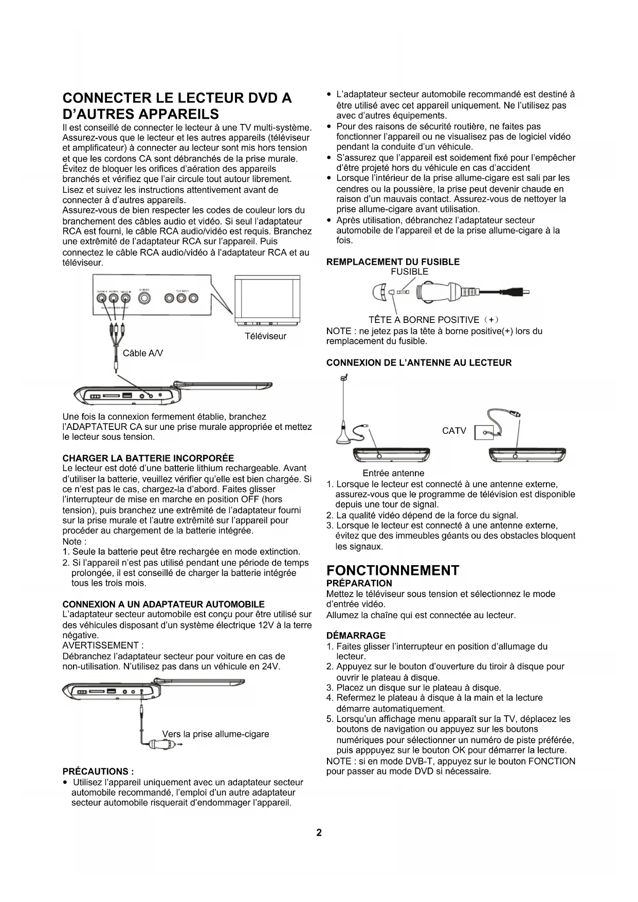 Il est conseilé de connecter le lecteur à une TV multi-système. Assurez-vous que le lecteur et les autres appareils (televiseur et amplificateur) à connecter au lecteur sont mis hors tension et que les cordons CA sont débranchés de la prise murale. Évitez de bloquer les orifices d'airation des appareils branchés et vérifie que l'air circule tout autour librement. Lizez et suivez les instructions attentivement avant de connecter à d'autres appareils.
