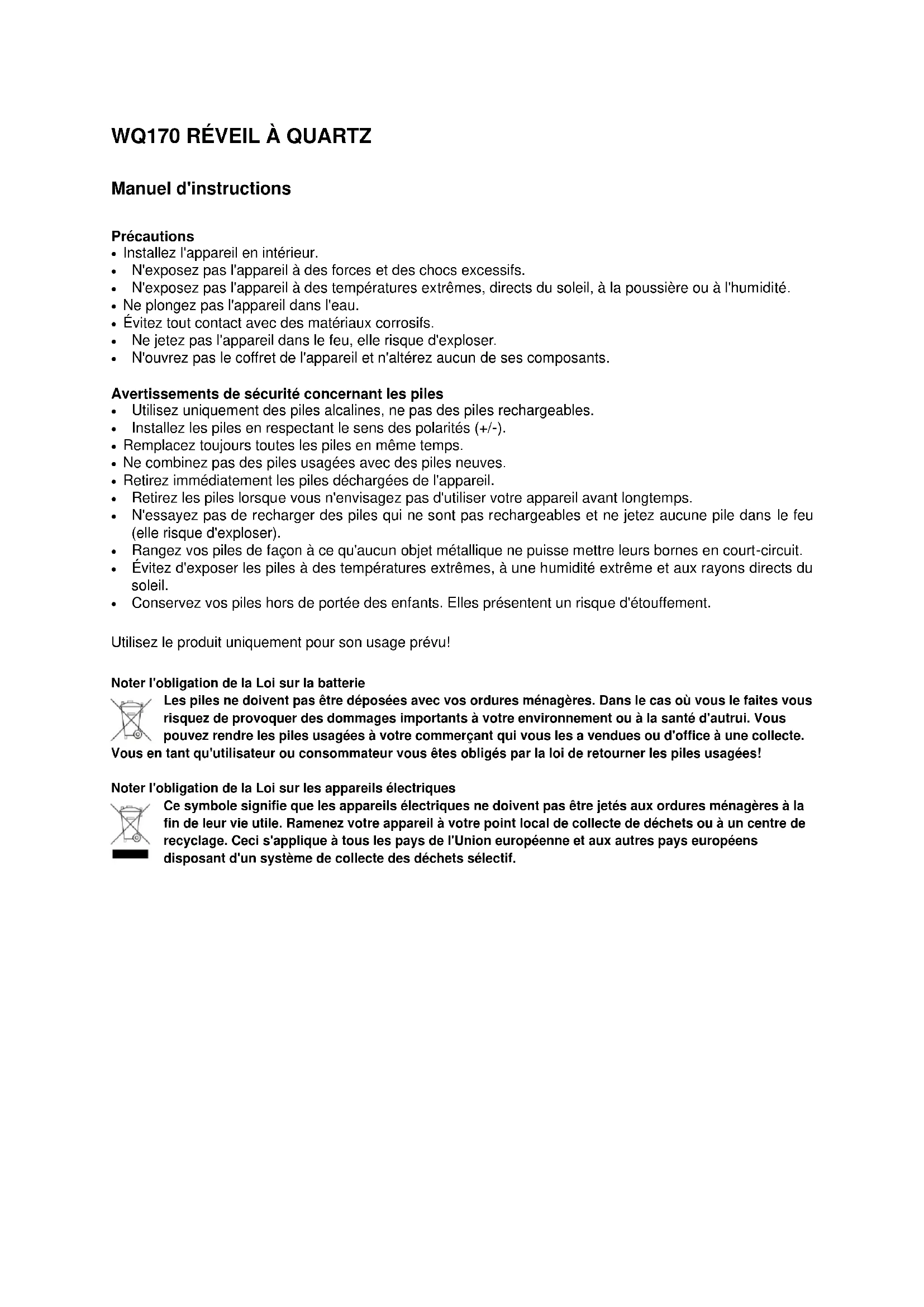Retrouvez gratuitement la notice de l'appareil WQ170 TECHNOLINE au format PDF.
