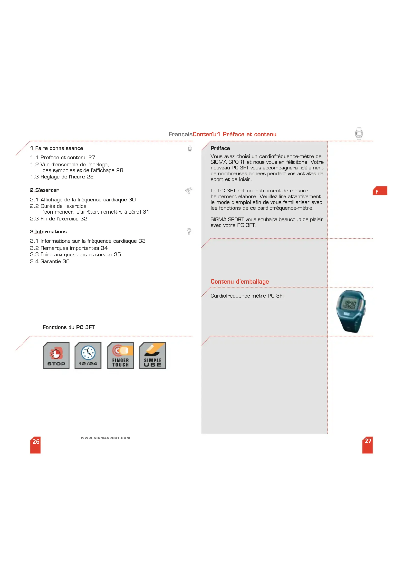 PC 3FT - Montre de sport SIGMA - Notice d'utilisation et mode d'emploi gratuit