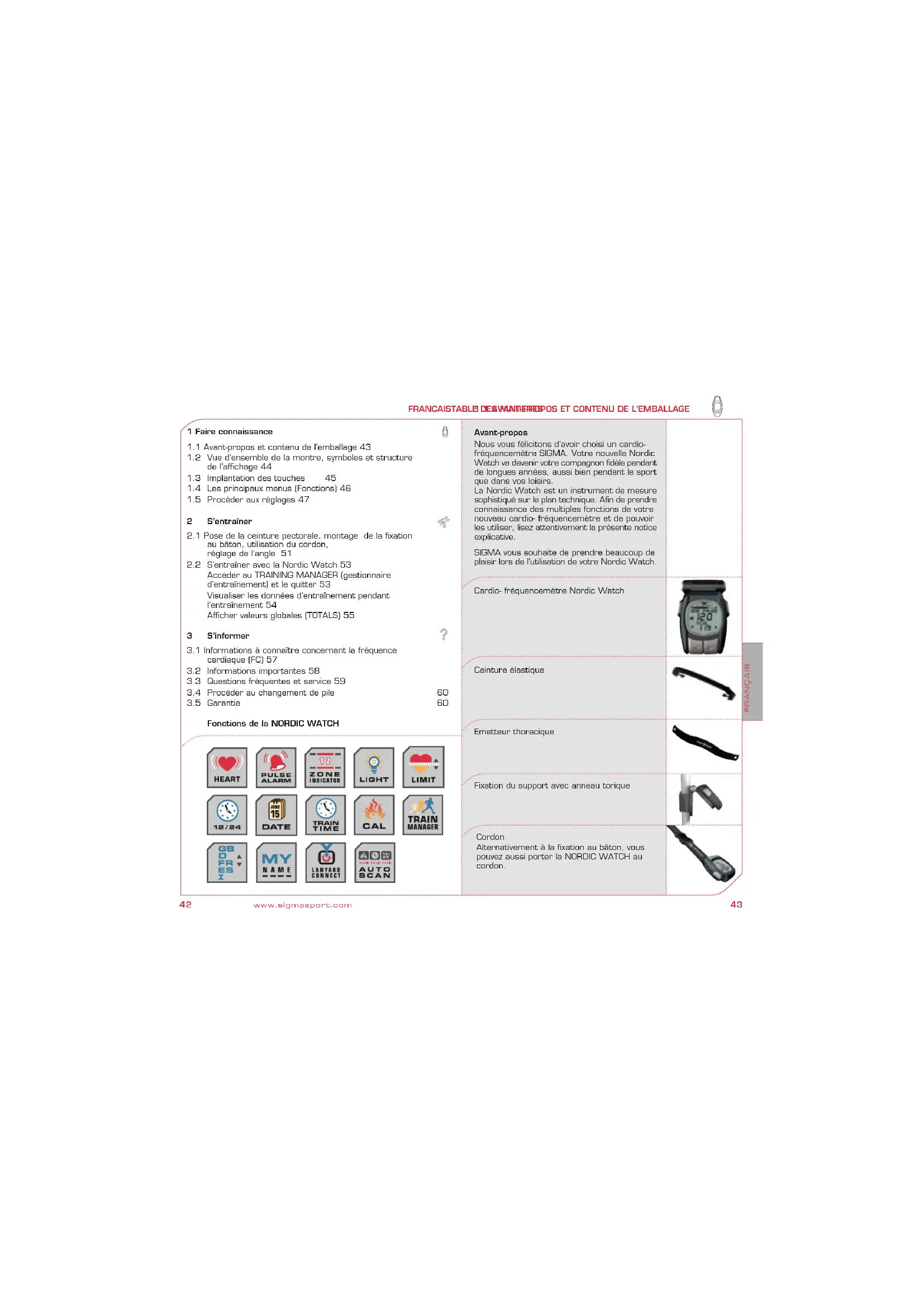 Nordic Watch - Montre de sport SIGMA - Notice d'utilisation et mode d'emploi gratuit