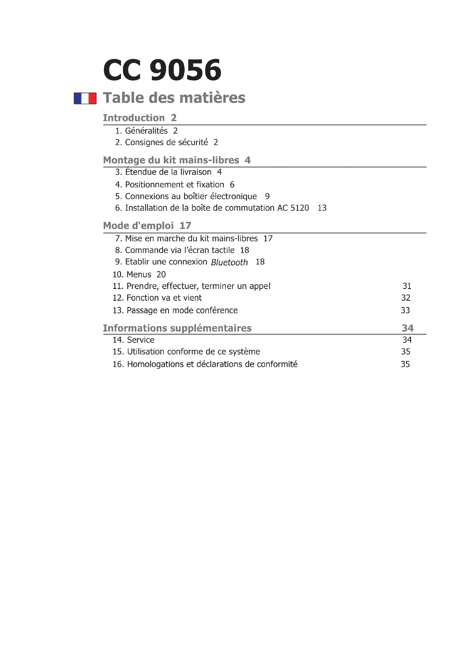 7. Mise en marche du kit mains-libres 17