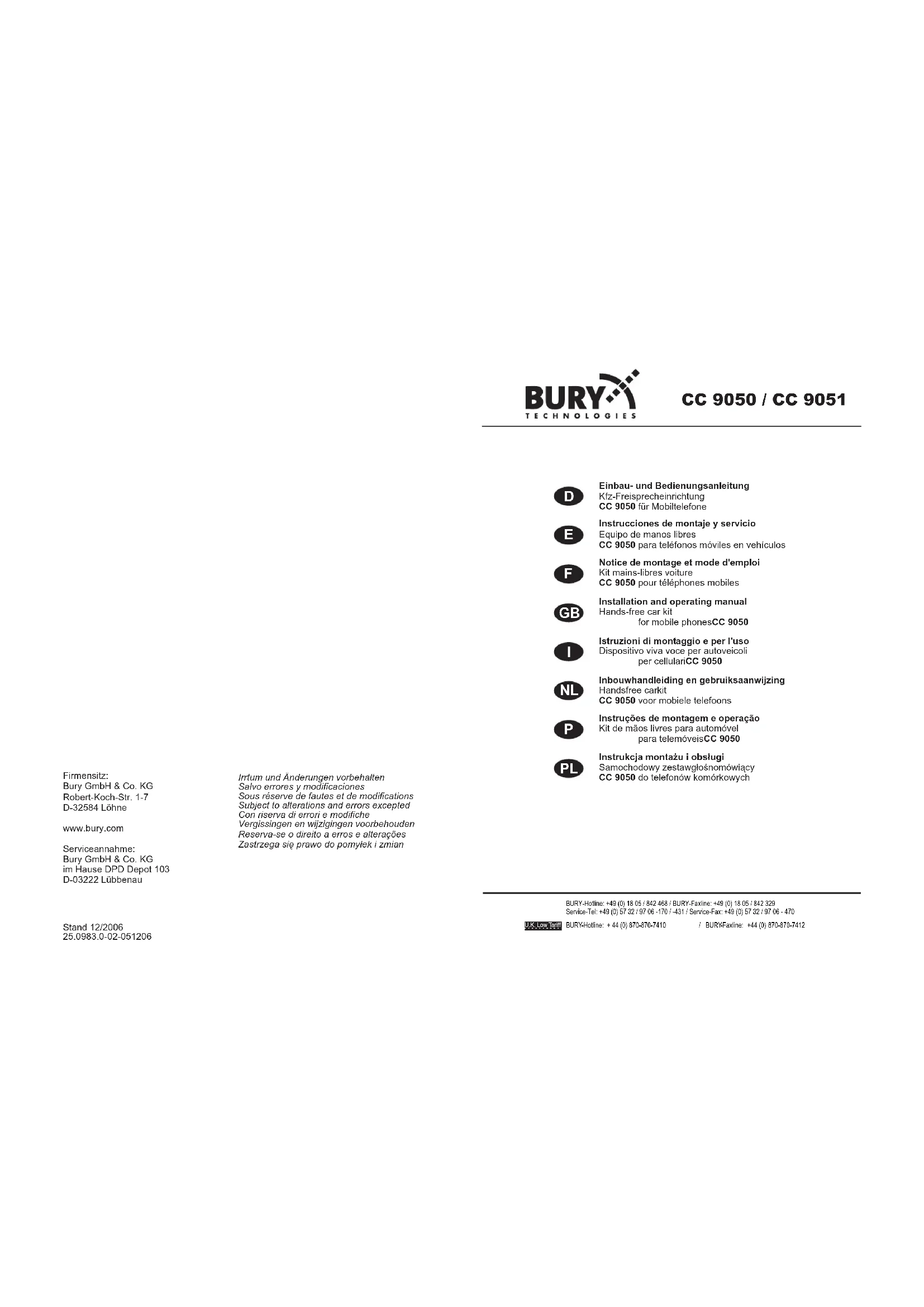 Retrouvez gratuitement la notice de l'appareil CC 9050 Bury au format PDF.