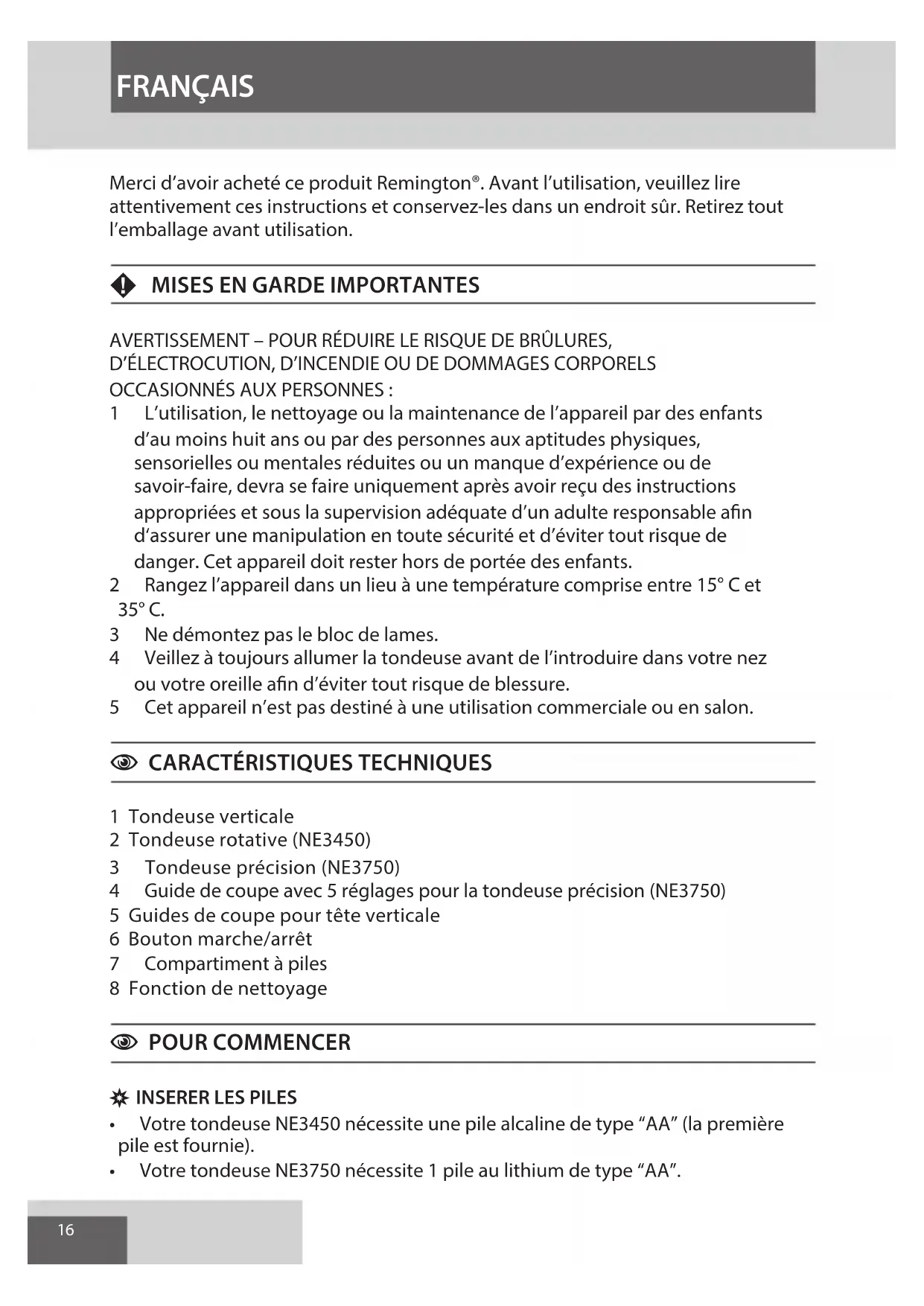 Retrouvez gratuitement la notice de l'appareil NE3450 REMINGTON au format PDF.