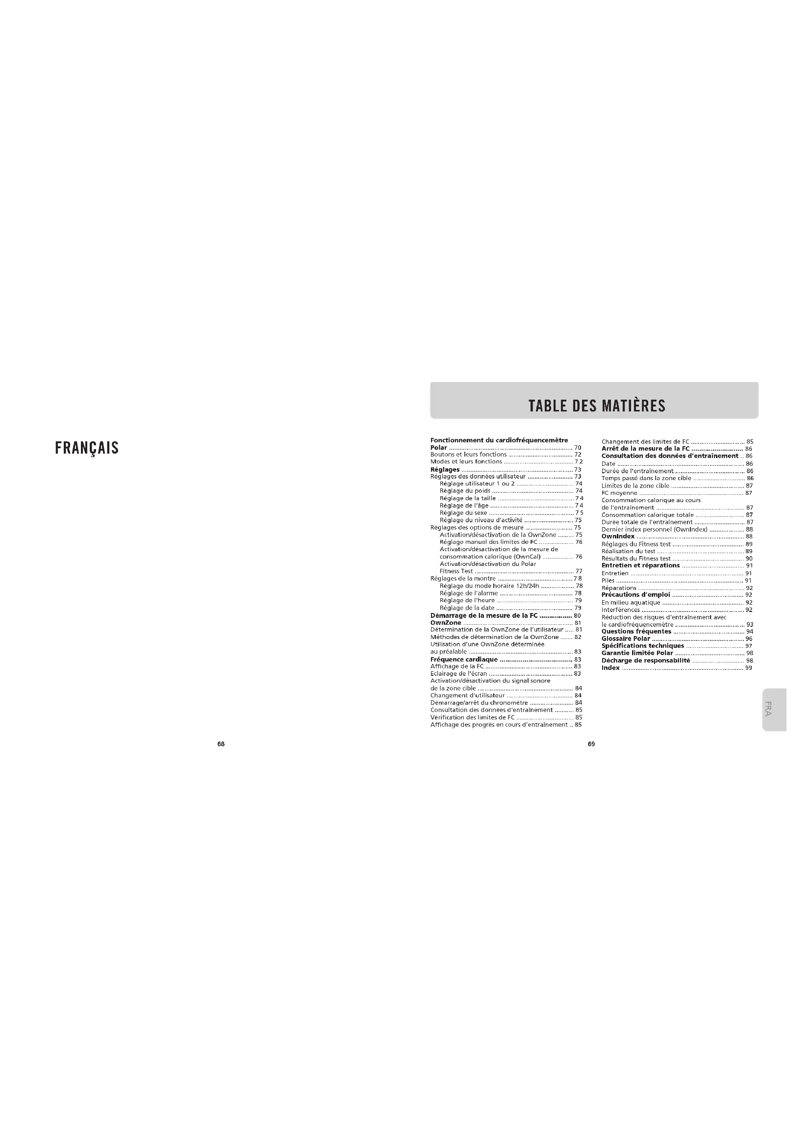 - Garantie limitée Polar p. 98