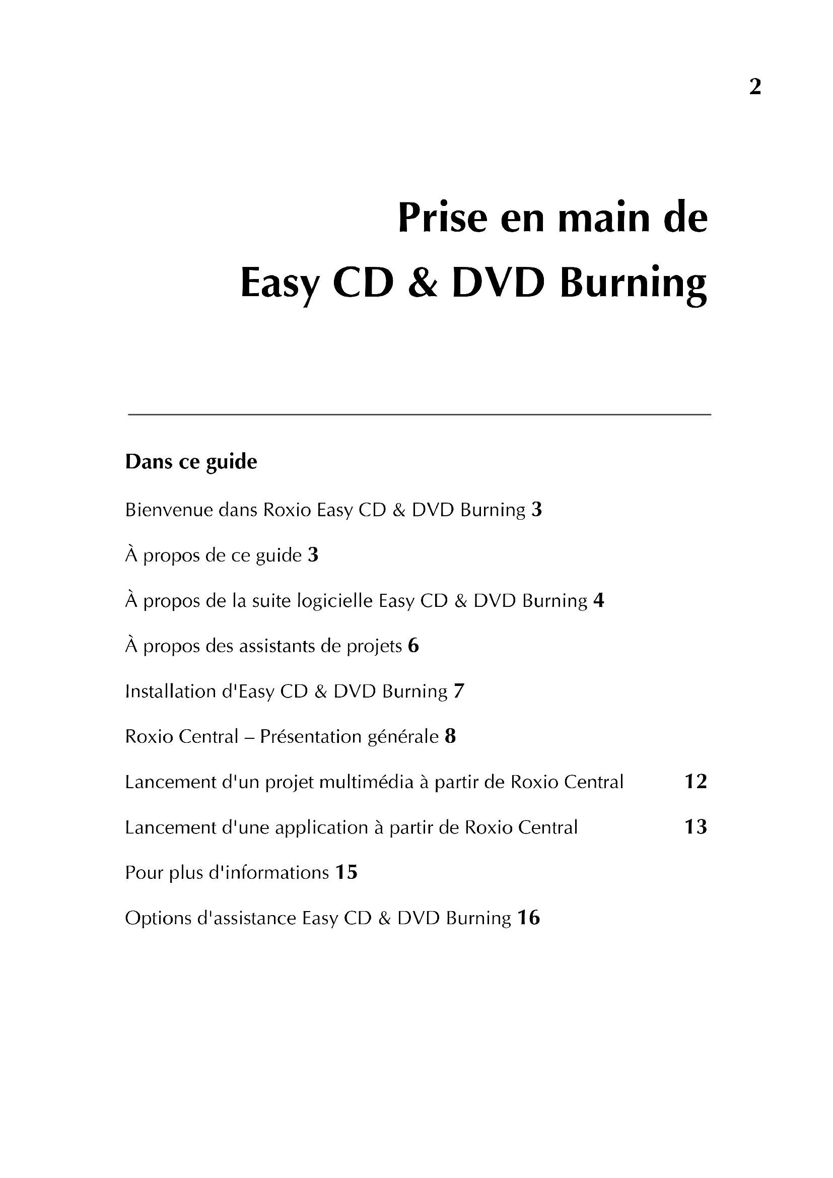 Ce guide vous présente Easy CD & DVD Burning de façon à vous permettre de commencer à l'utiliser facilement. Pour en savoir plus sur toutes les fonctions de Easy CD & DVD Burning, voir l'aide en ligne représentée à la rubrique Pour plus d'informations à la page 15.