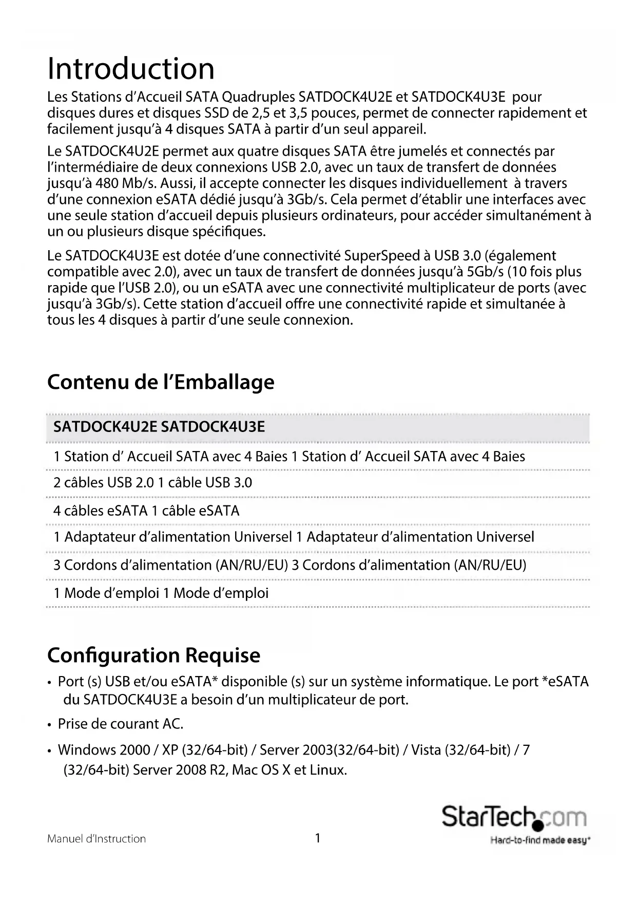MODE D'EMPLOI SATDOCK4U2E StarTech.com