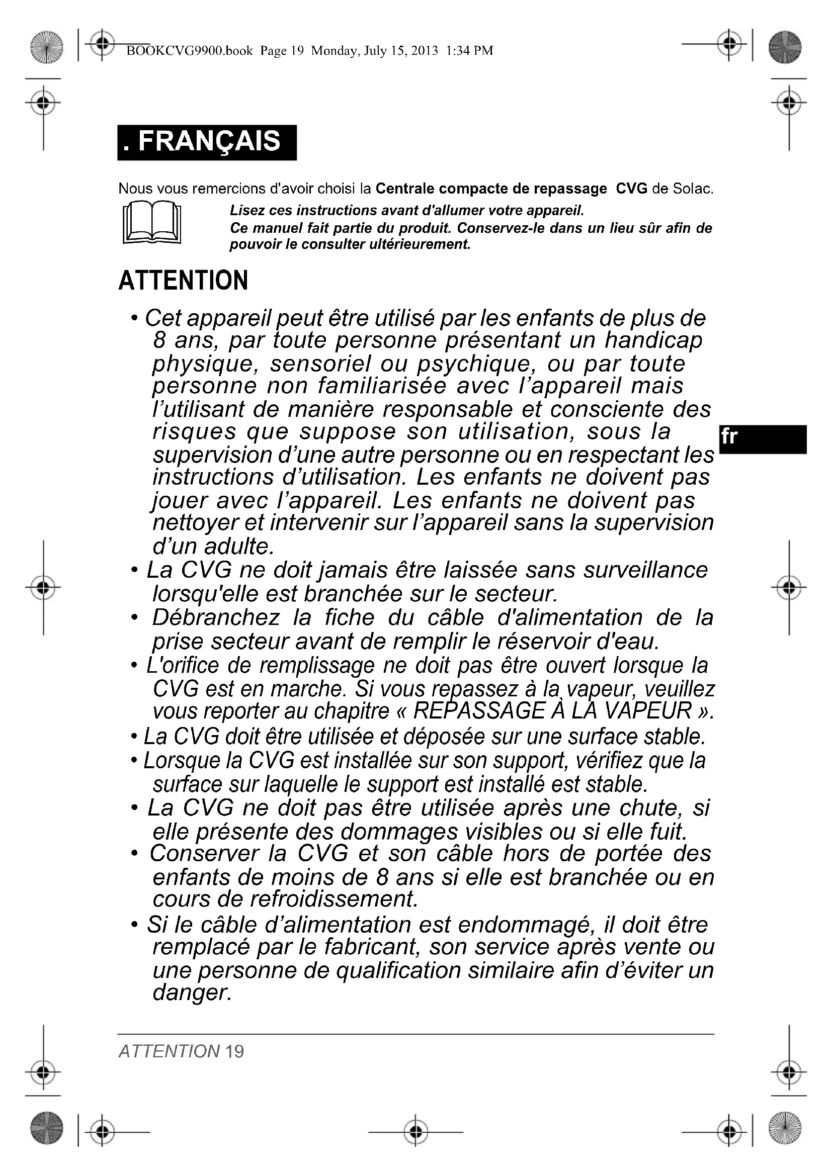 Nous vous remercions d'avoir choisi la Centrale compacte de repassage CVG de Solac.