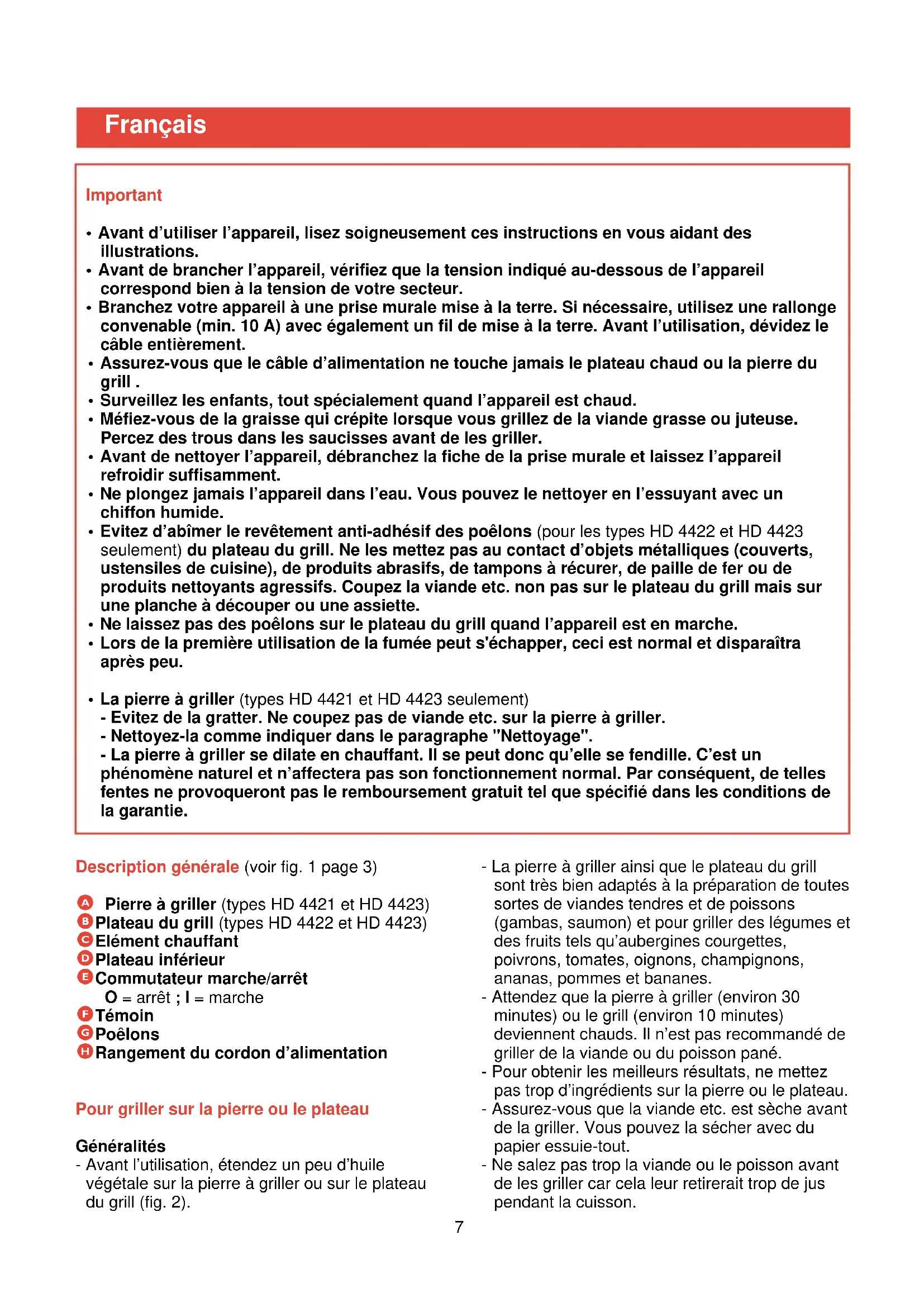 A Pierre à griller (types HD 4421 et HD 4423)