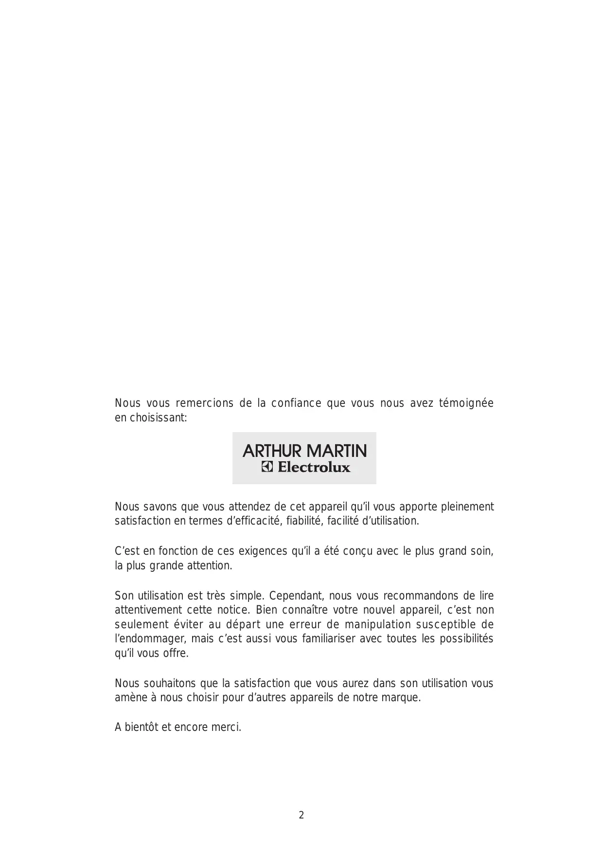 MODE D'EMPLOI PERFECTION ARTHUR MARTIN