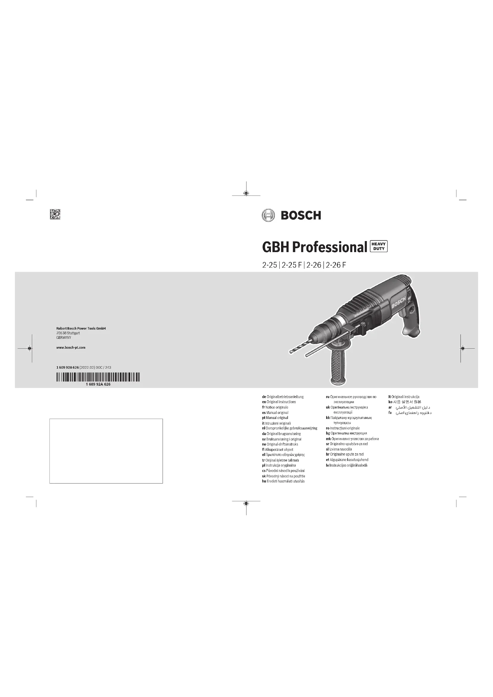 Retrouvez gratuitement la notice de l'appareil GBH 226 F Professional BOSCH au format PDF.