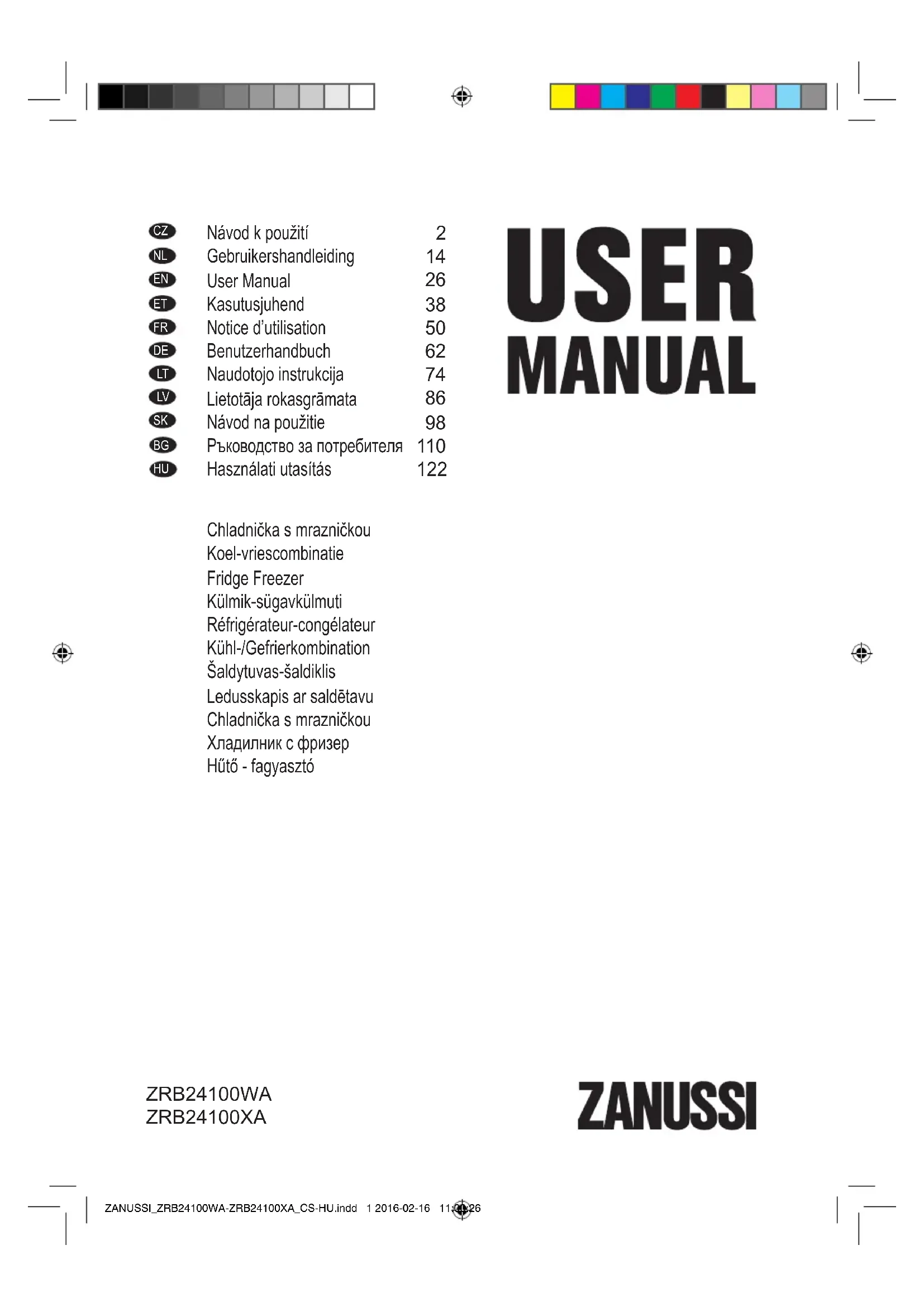 ZRB24100XA - Réfrigérateur ZANUSSI - Notice d'utilisation et mode d'emploi gratuit