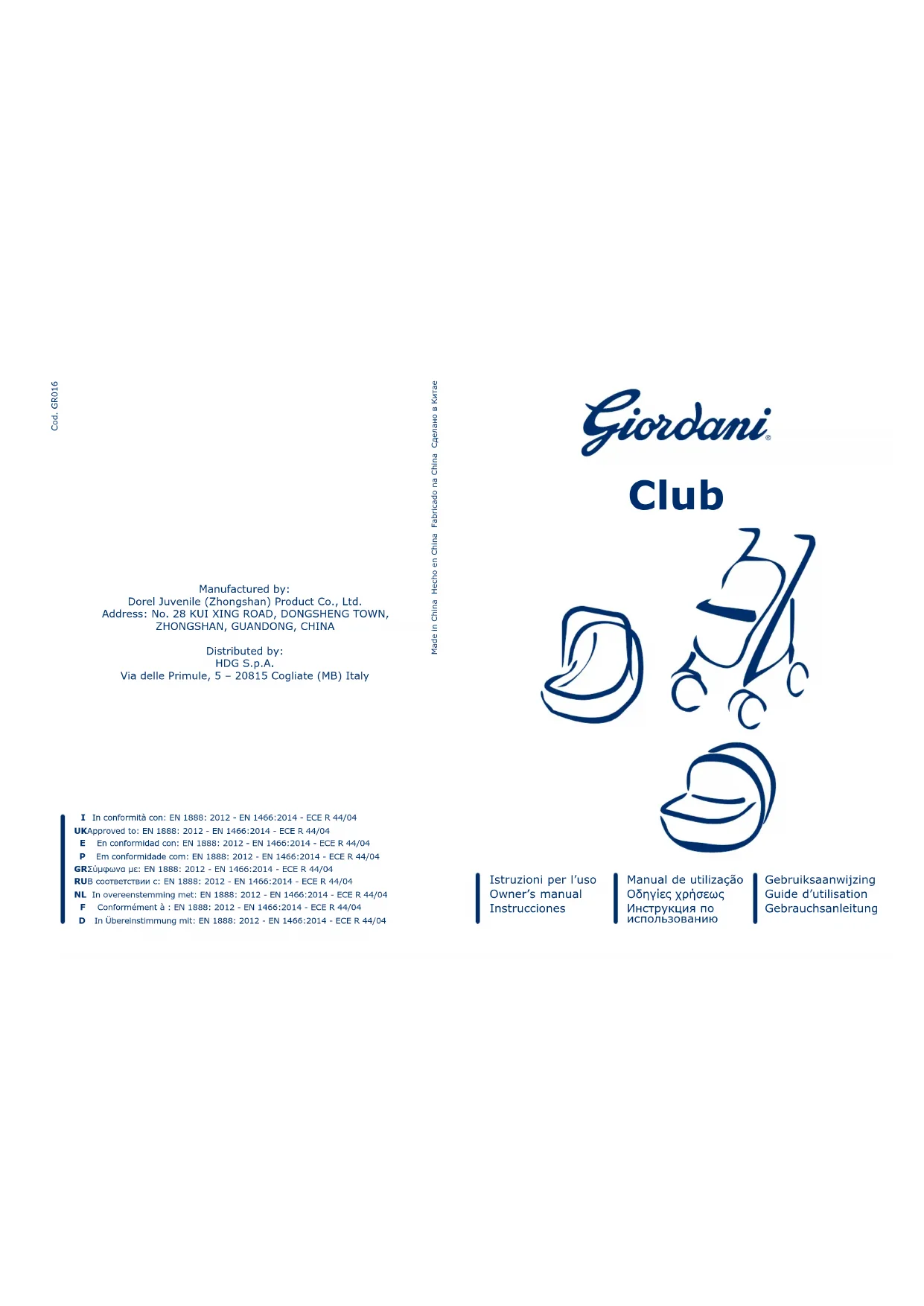 Club - Poussette Giordani - Notice d'utilisation et mode d'emploi gratuit