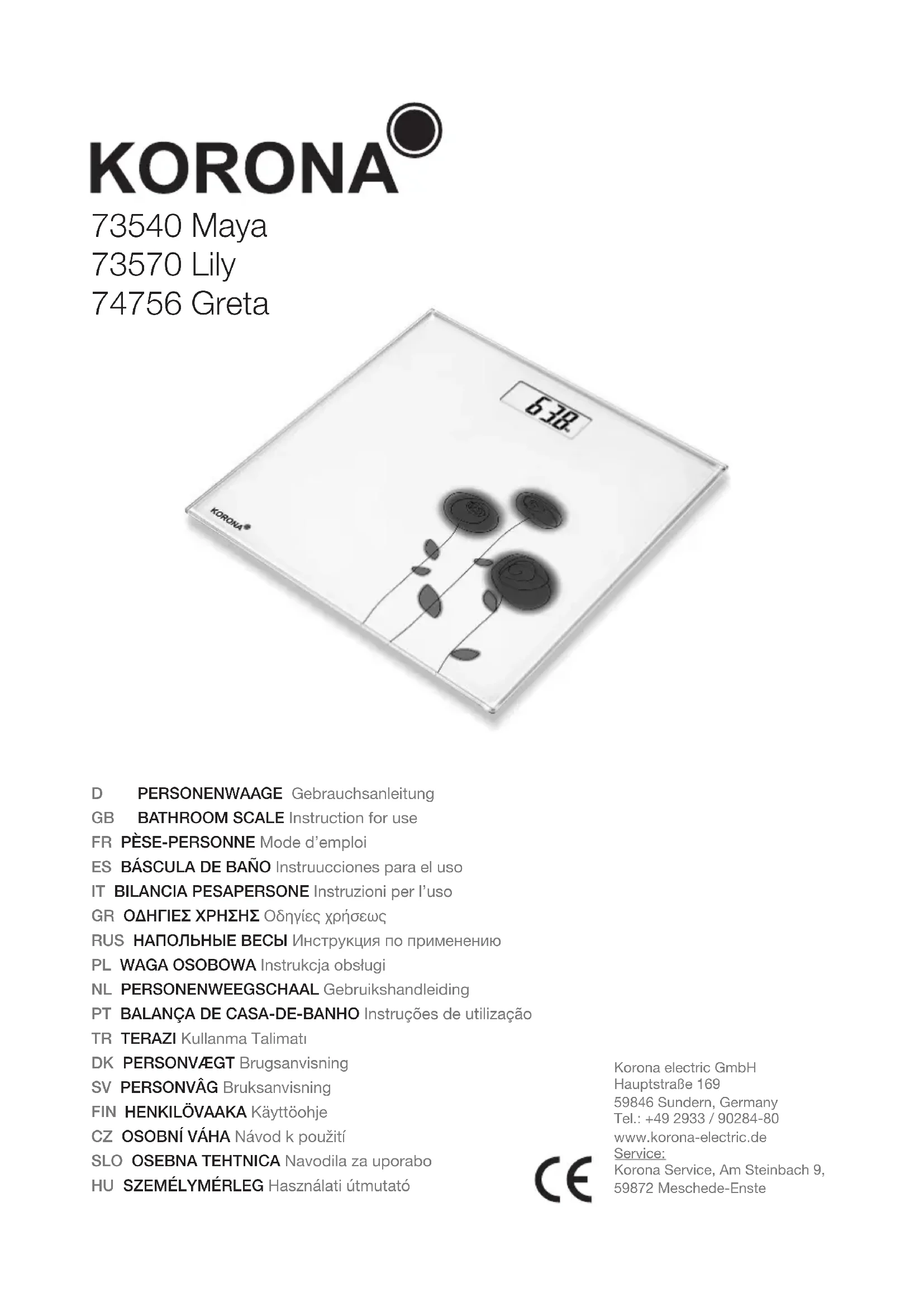 Téléchargez la notice de votre Balance au format PDF gratuitement ! Retrouvez votre notice Lily - KORONA et reprennez votre appareil électronique en main. Sur cette page sont publiés tous les documents nécessaires à l'utilisation de votre appareil Lily de la marque KORONA.