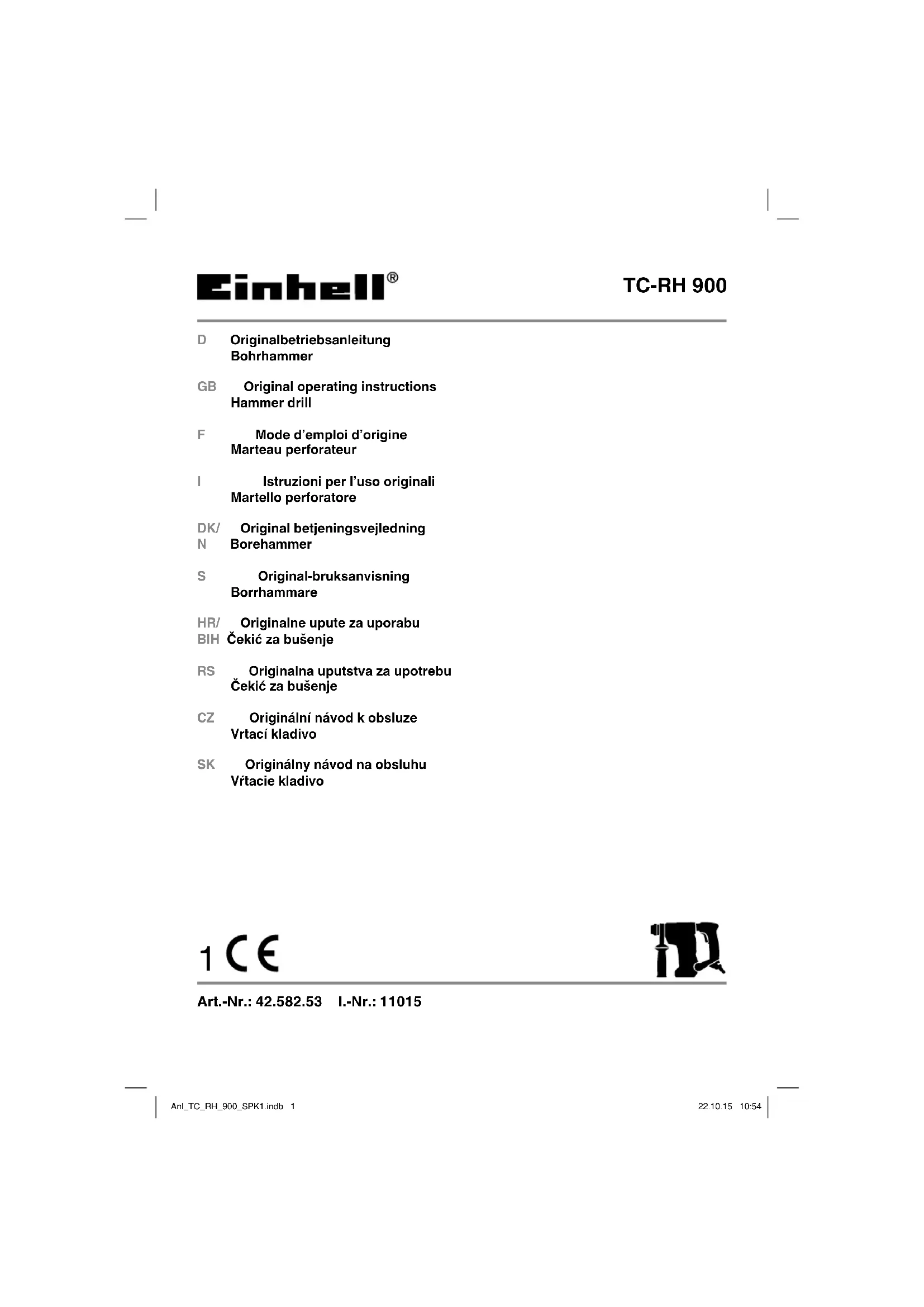 Téléchargez la notice de votre Perceuse au format PDF gratuitement ! Retrouvez votre notice TCRH 900 KIT - EINHELL et reprennez votre appareil électronique en main. Sur cette page sont publiés tous les documents nécessaires à l'utilisation de votre appareil TCRH 900 KIT de la marque EINHELL.