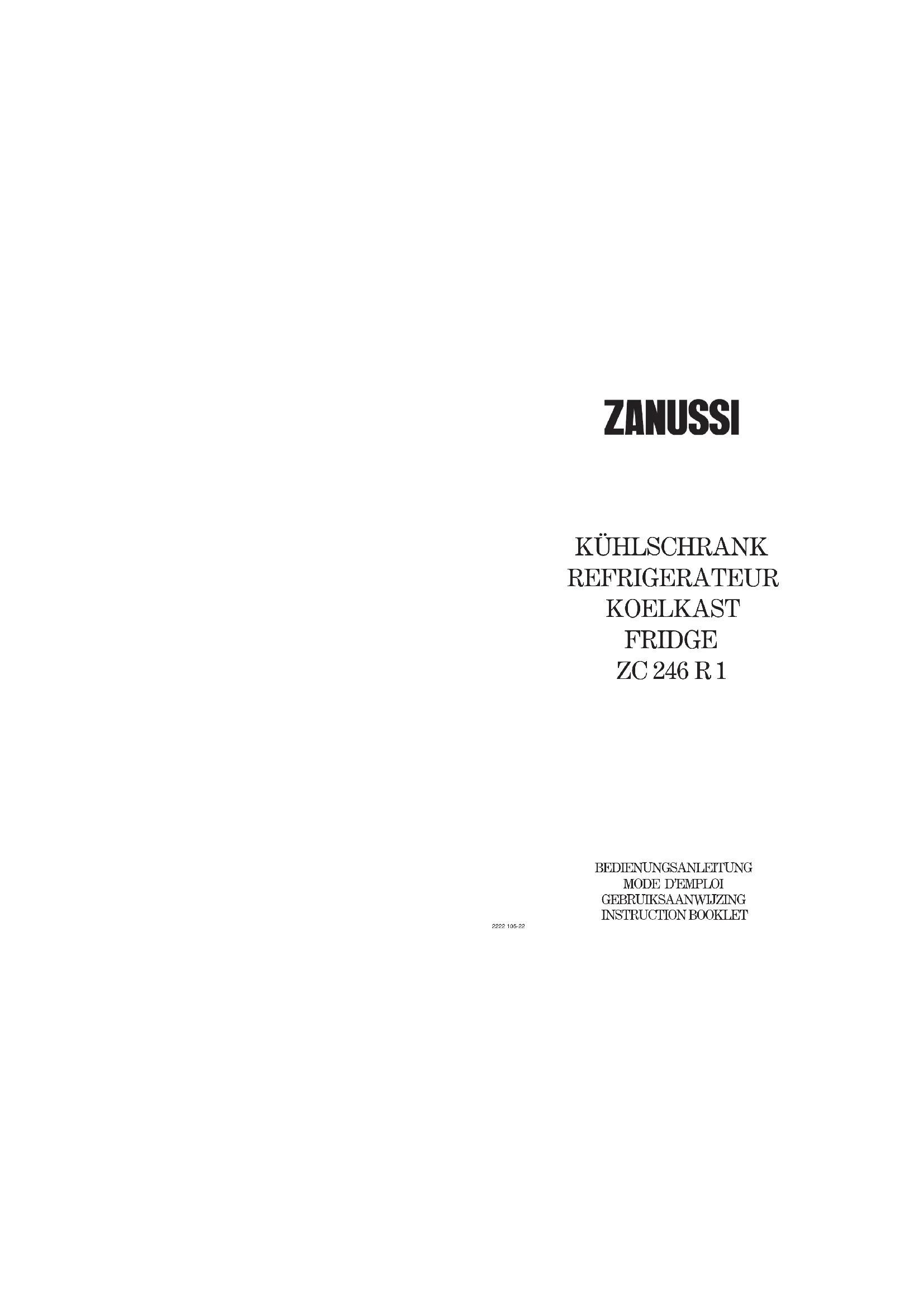 Retrouvez gratuitement la notice de l'appareil ZC 246 R1 Zanussi-Electrolux au format PDF.