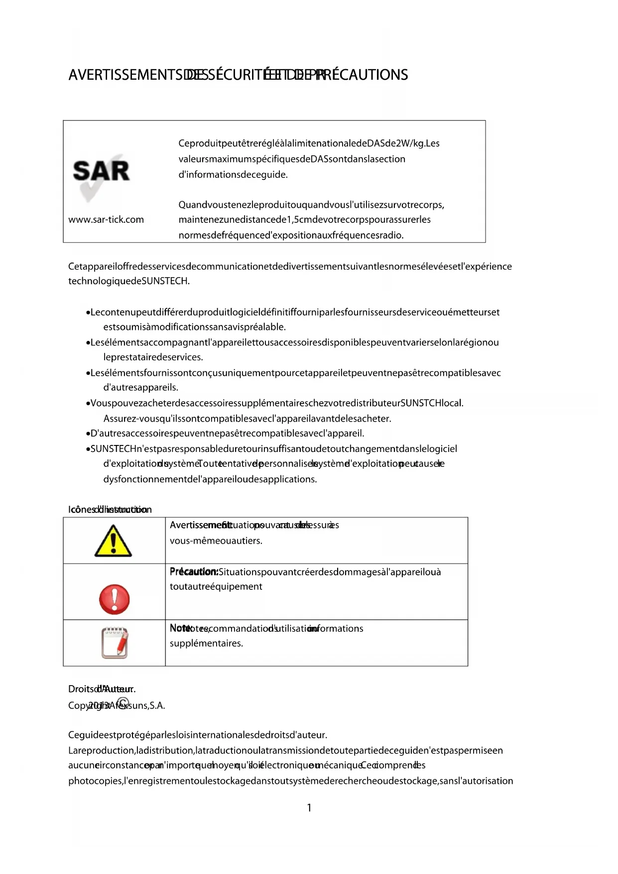 Dansstouslescas,lesréparationssoususgarantieseronteffectueesparleServiceofficield'assistancetechniquee SUNSTECHouparsedsistribuetsaurisés.