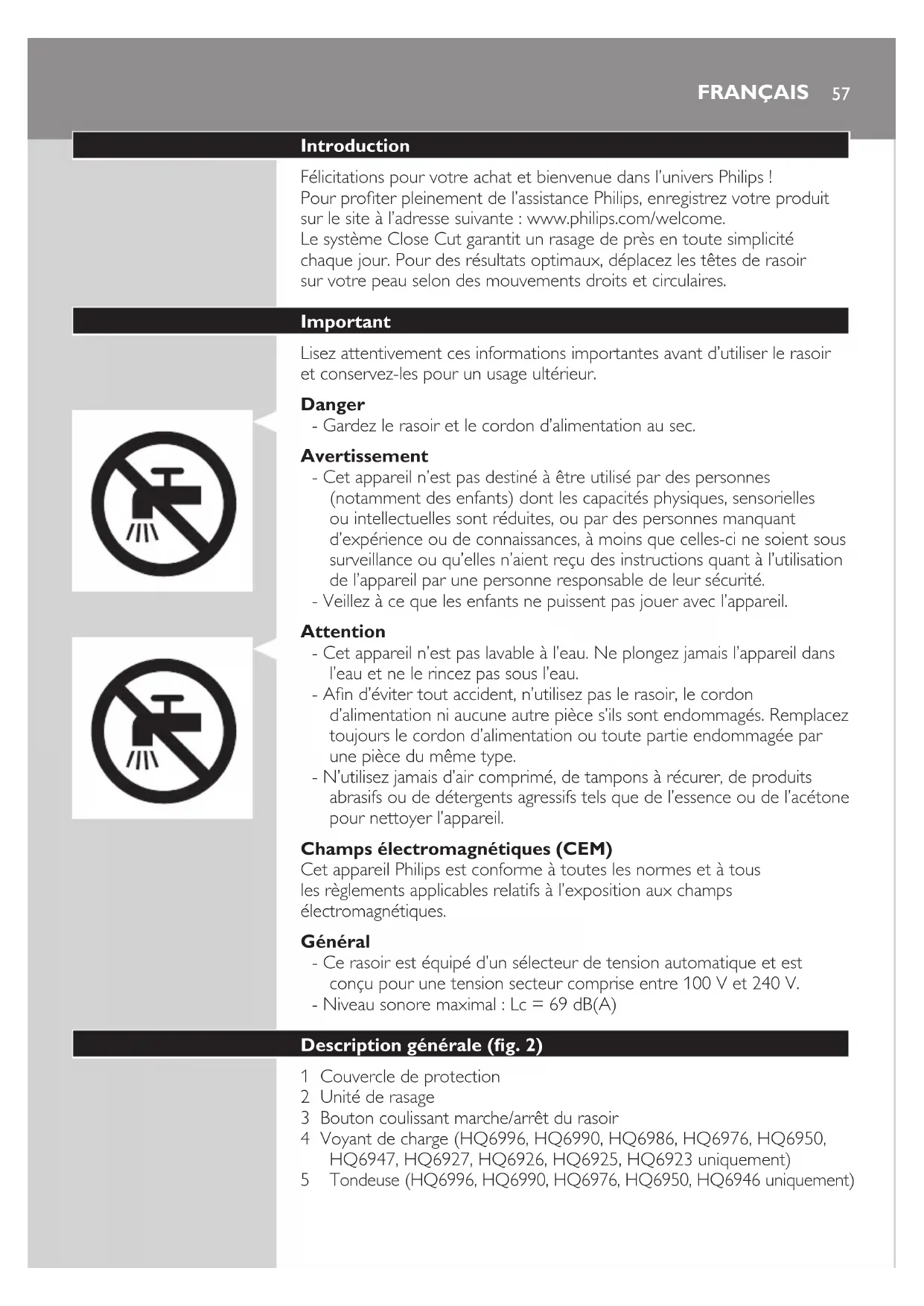 HQ6997 - Rasoir PHILIPS - Notice d'utilisation et mode d'emploi gratuit