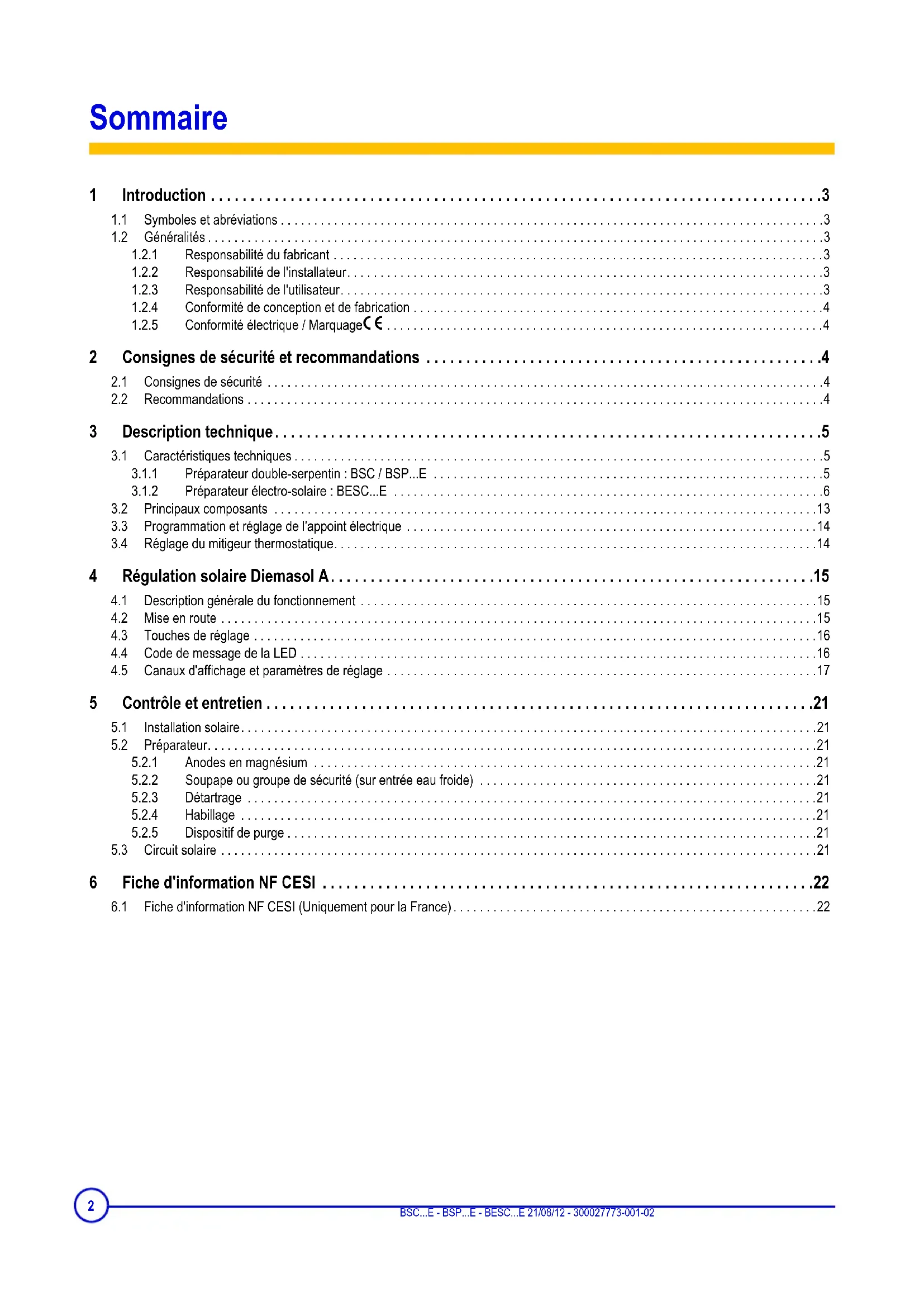 - 6.1 Fiche d'information NF CESI (Uniquement pour la France) 21/08/12 - 300027773-001-02 BSC E - BSP E - BESC E 1Introduction p. 223