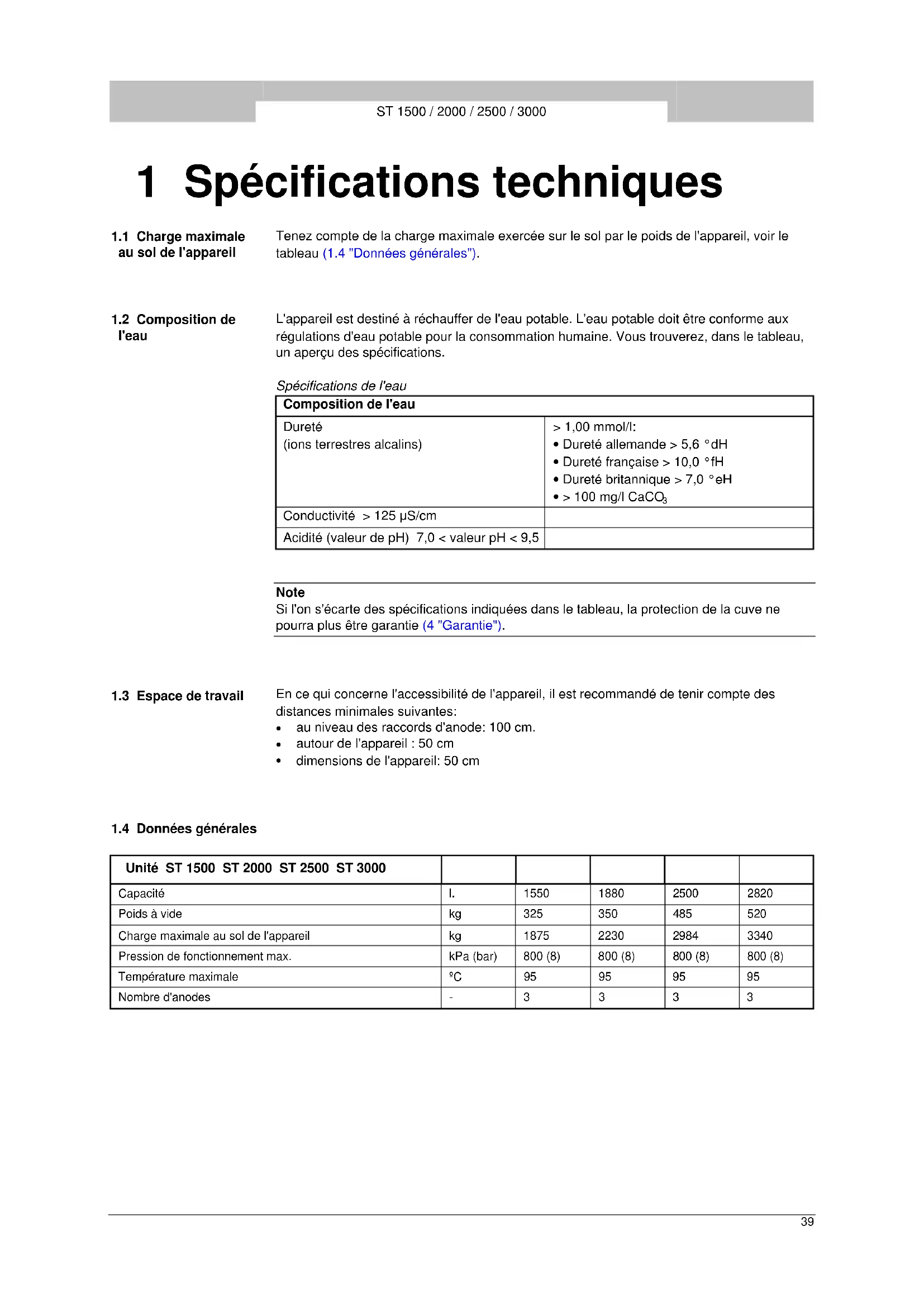 | Unité ST 1500 ST 2000 ST 2500 ST 3000 | |||||