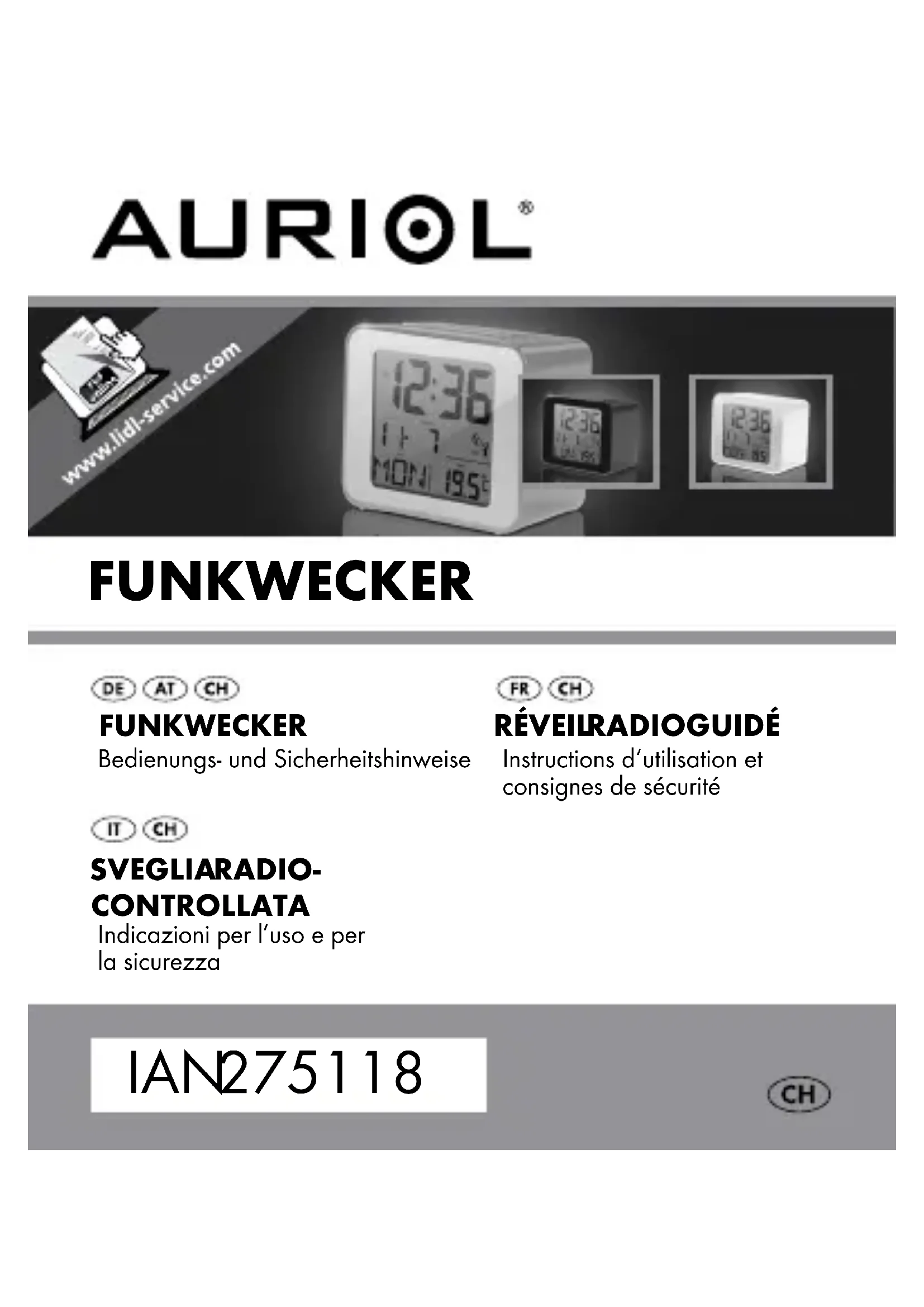 Compartiment à piles (voir im. D) Caractéristiques techniques Tension de service : 3 V Piles : 2 x piles LR03 (type AAA, 1,5 V) Température de fonctionnement : env. 0–50 °C (32–122 °F) Contenu de la livraison 1 Radio réveil 2 Piles LR 03 (déjà en place) 1 Mode d‘emploi34 FR/CH Instructions générales de sécurité Prenez connaissance de toutes les indications de maniement et de sécurité avant d‘utiliser l‘appareil pour la première fois. Transmettez également tous les documents en cas de transmis- sion du produit à une personne tierce. DANGER DE