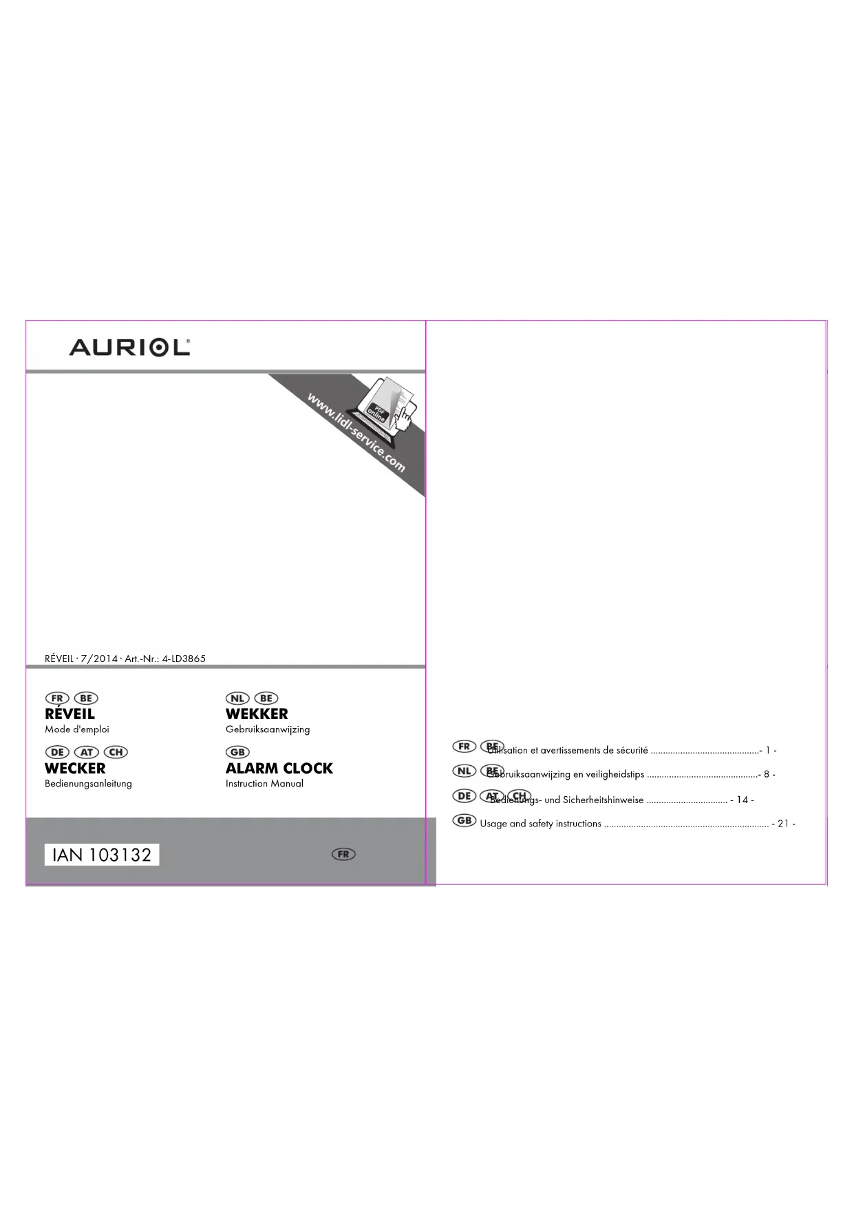 Retrouvez gratuitement la notice de l'appareil 4LD3865 AURIOL au format PDF.