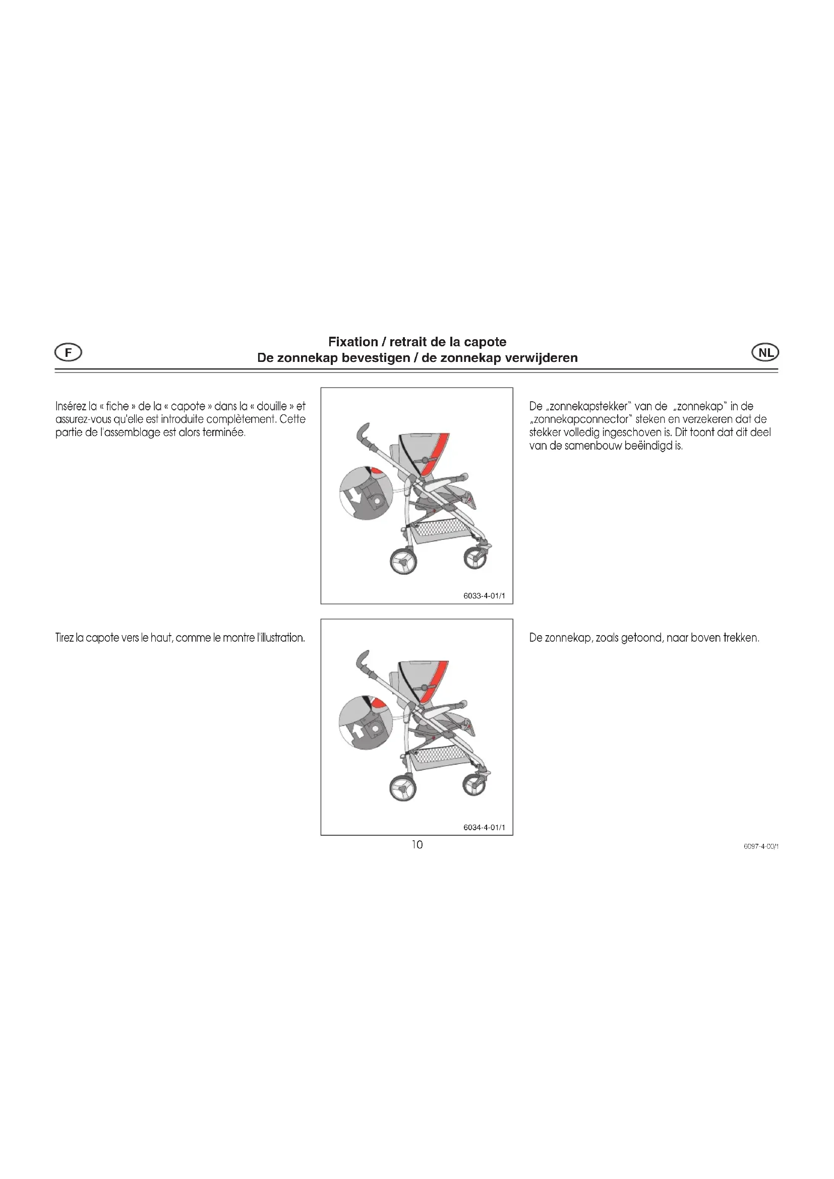 Tenez les deux bras mobiles du cadre des deux cêts de la capote et appuyez cette démarche vers le bas pour l'ouvir ou vers le haut pour la plier.