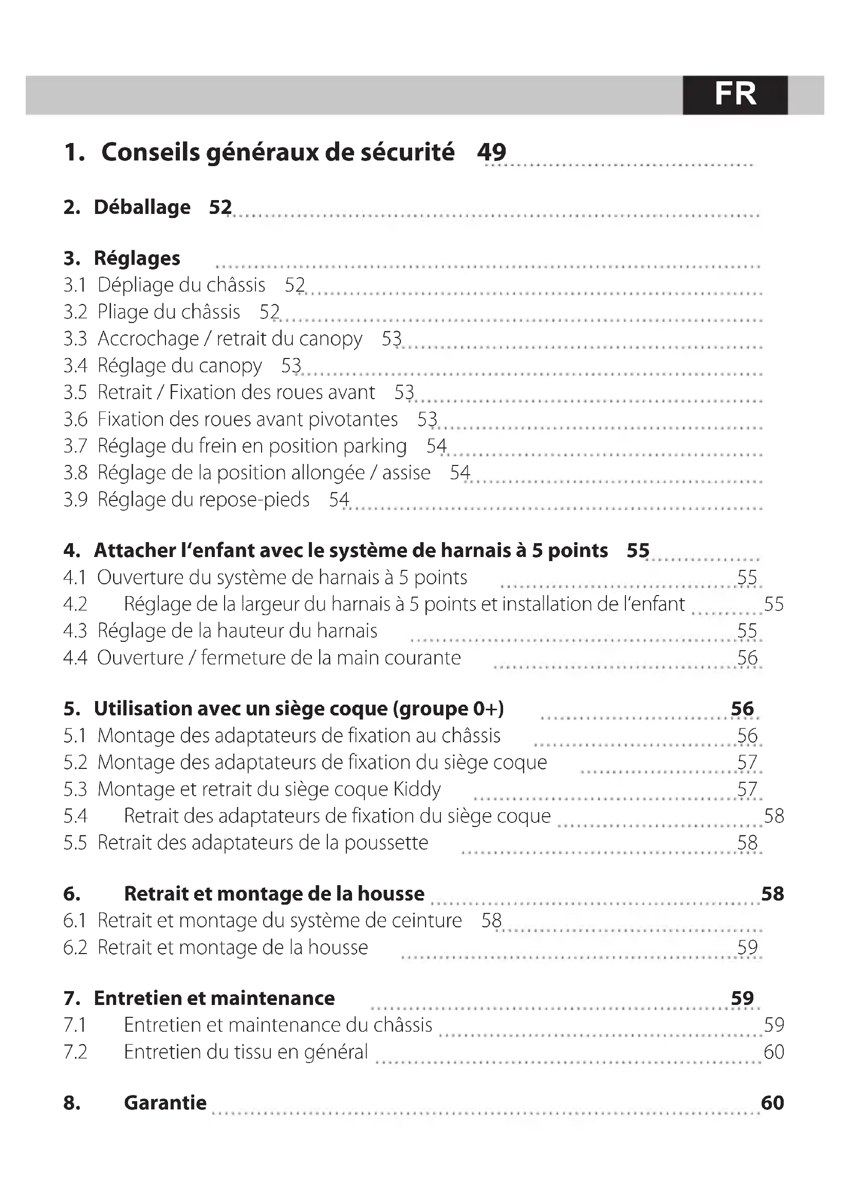 7.2 Entretien du tissu en général 60