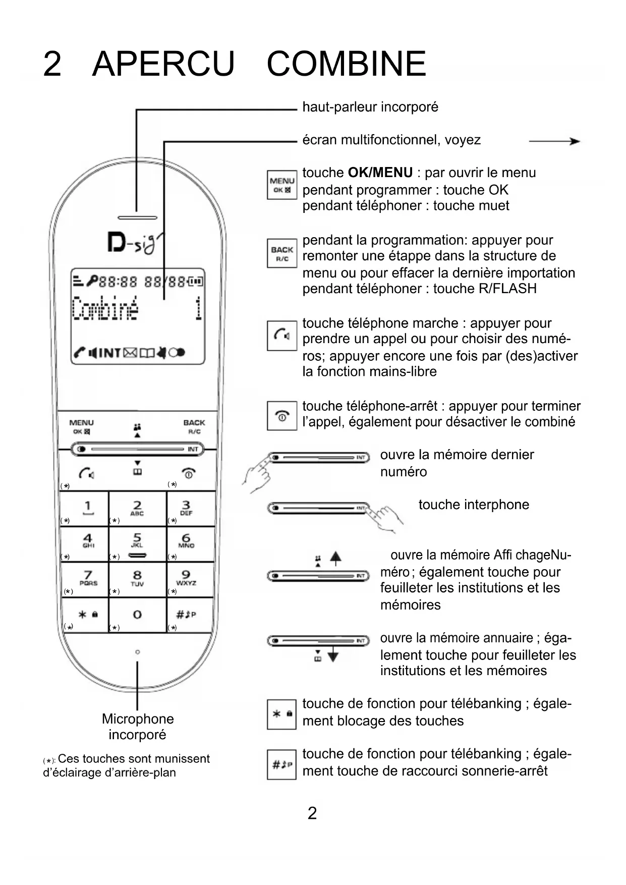 éclaircit quand ils se trouvent de nouveaux appels dans la mémoire. Affiche chargeNuméro et pendant la consultation de cette mémoire. Éclaircit pendant la consultation de la mémoire annuaire. Éclaircit quand la sonnerie du combiné est désactivée. Éclaircit pendant la consultation de la mémoire dernier numéro.