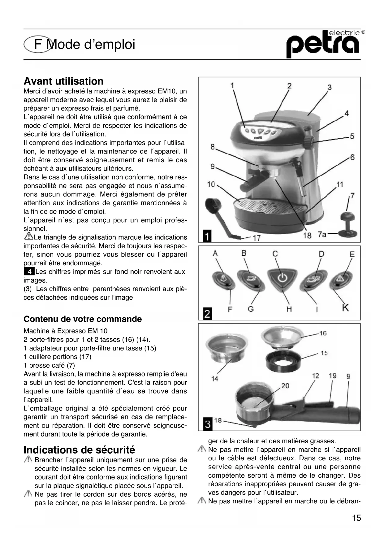 MODE D'EMPLOI EspressoAutomat EM 10 Petra Electric